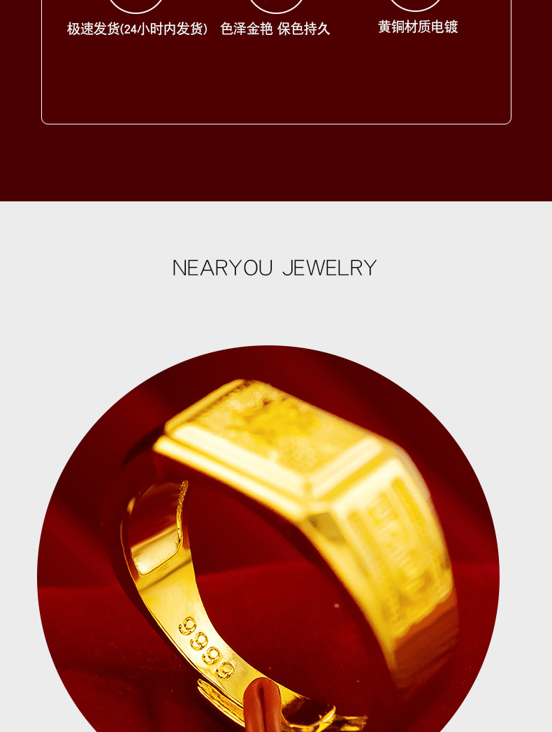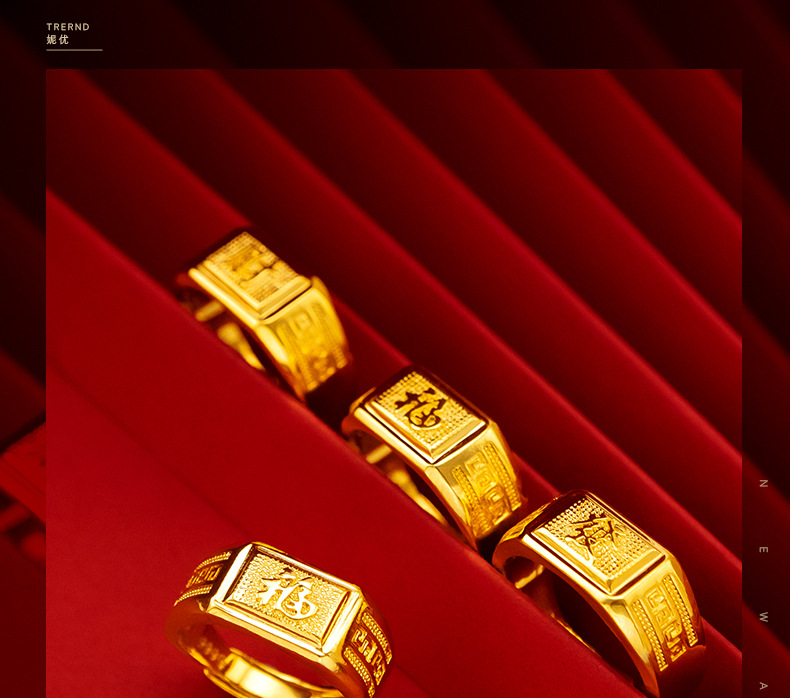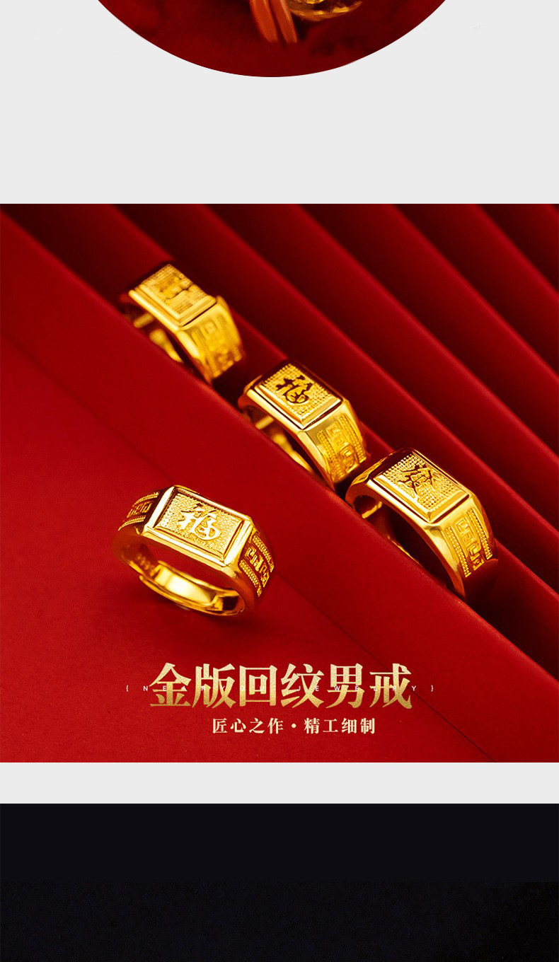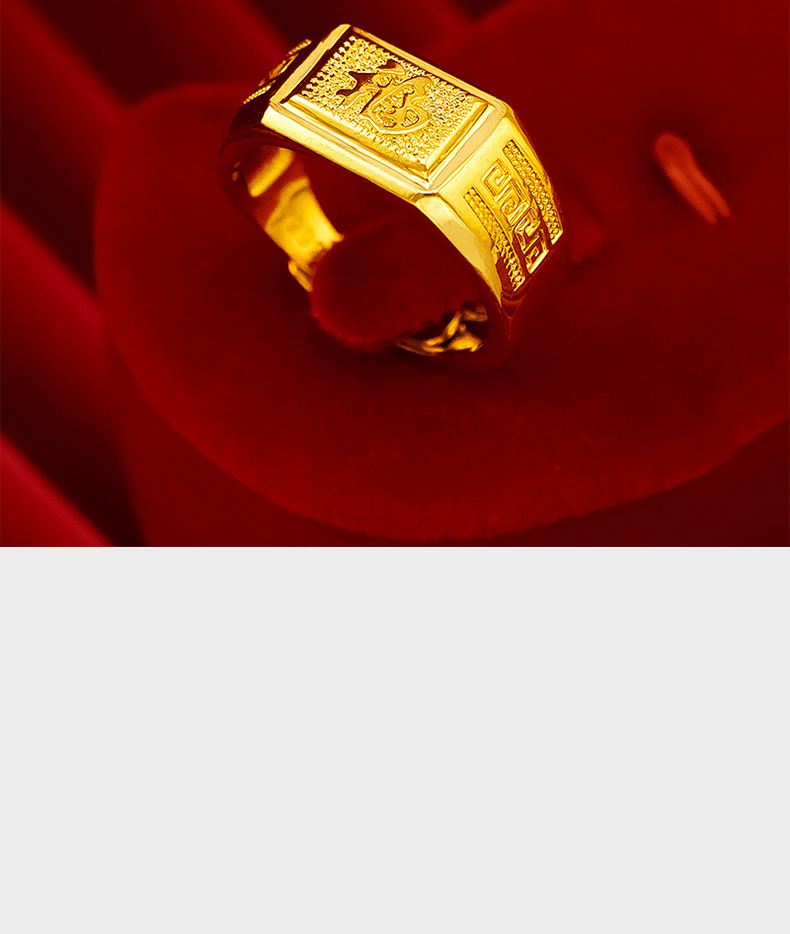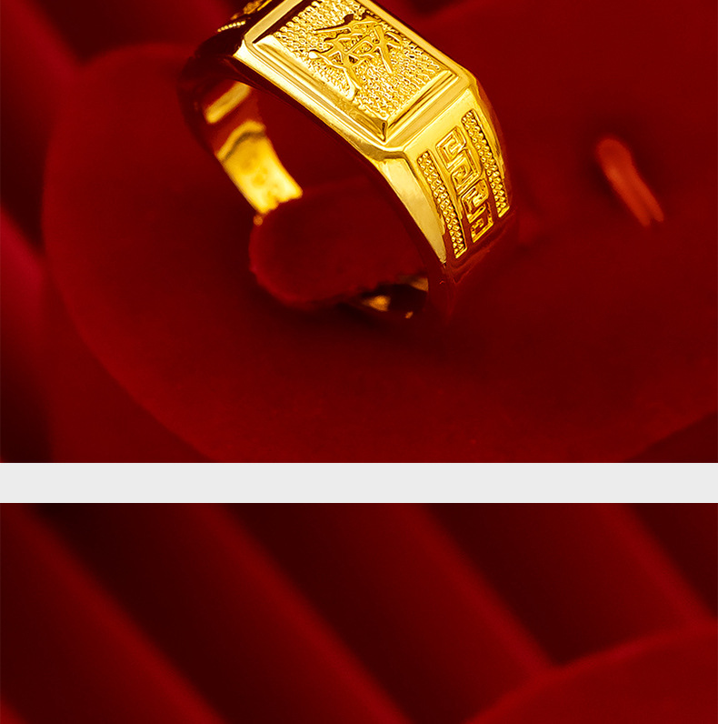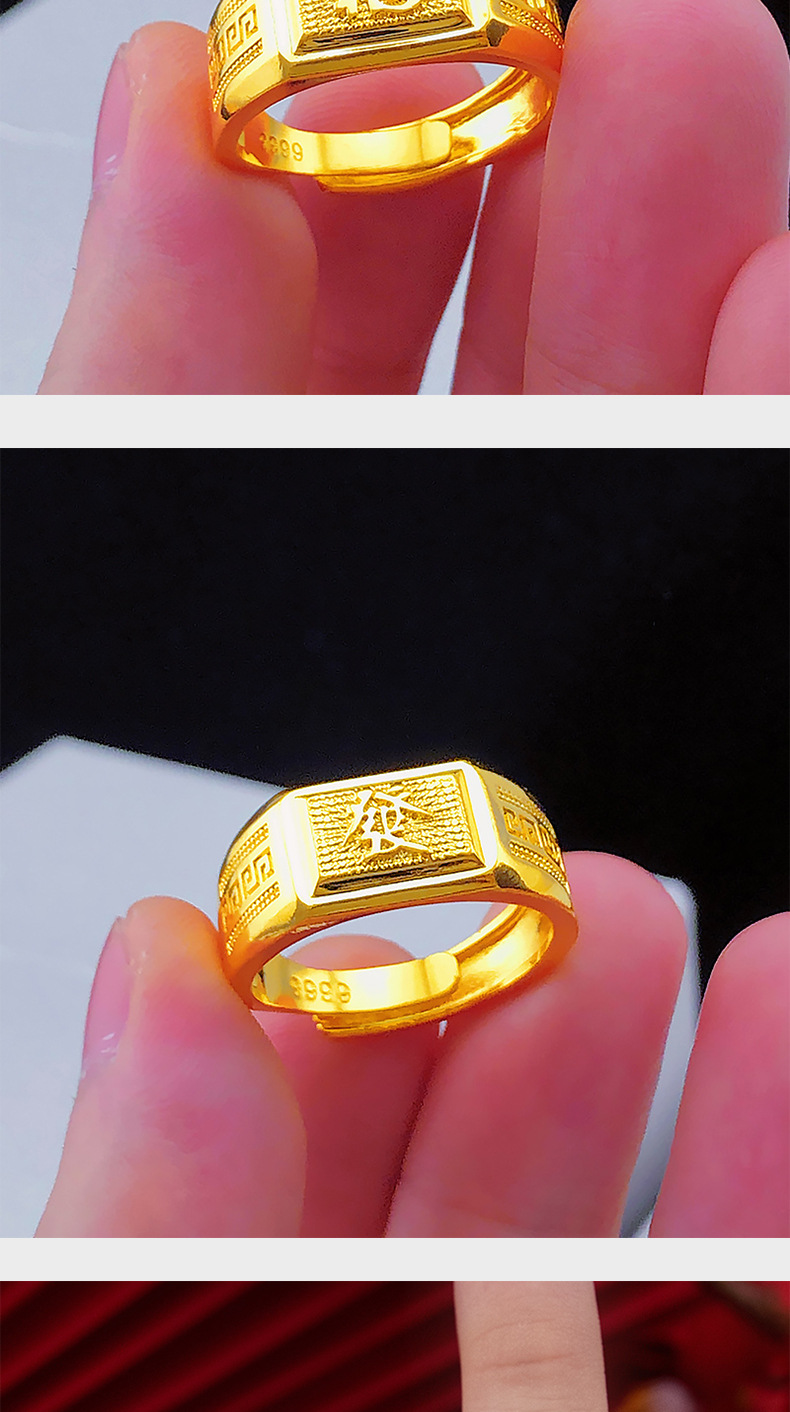 Gold shop same style lucky money back pattern ring sand gold pure copper plated 24k gold back pattern open ring lucky money men's ring