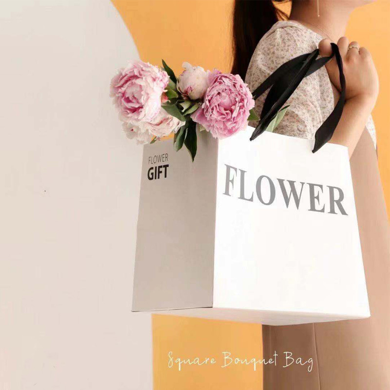 New Square Kraft paper bag gift bouquet gift box hand bag gift bag lengthened handle flower handbag