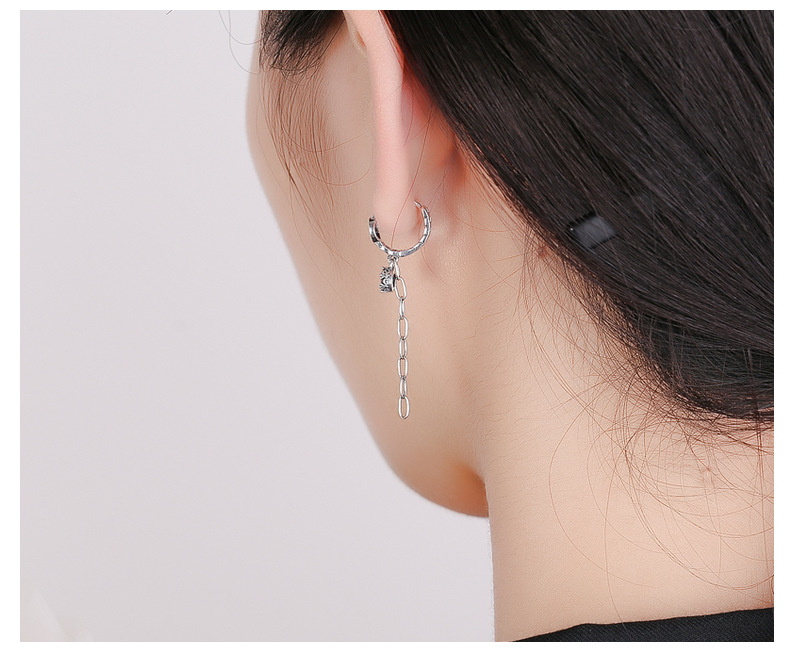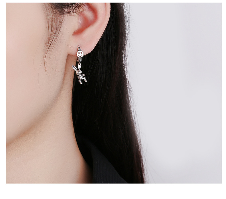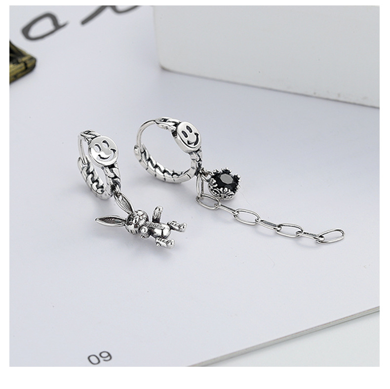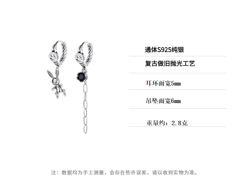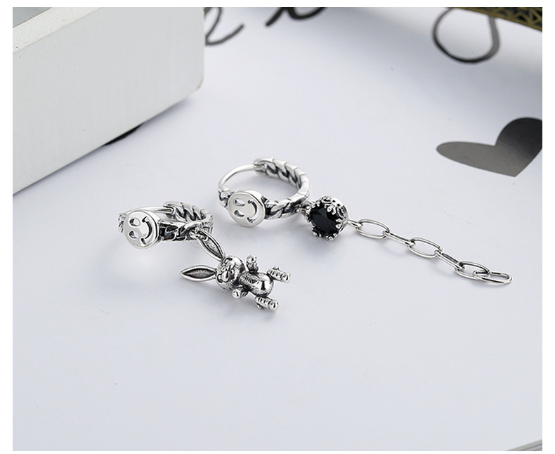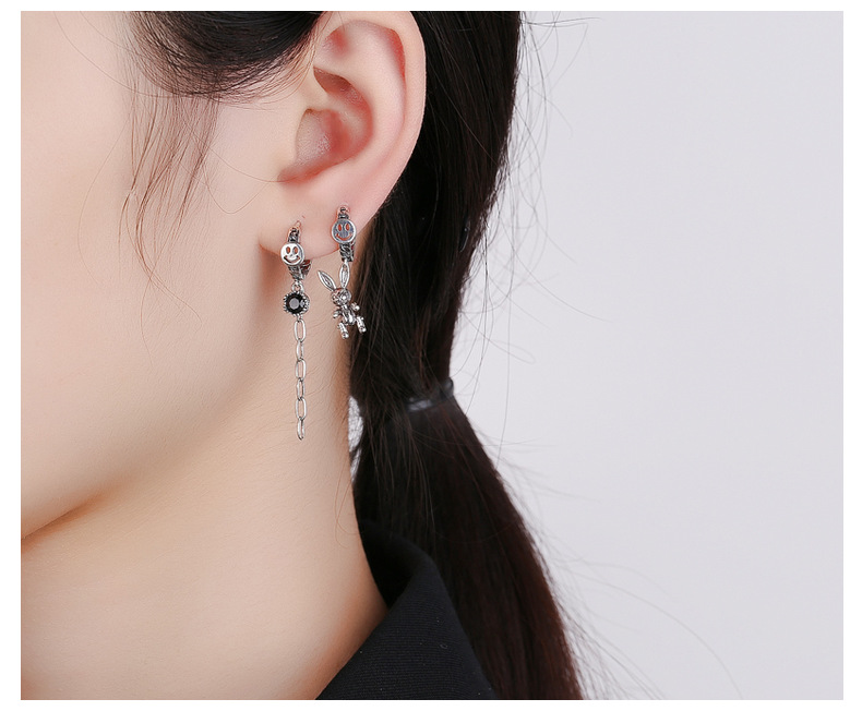 Yunchaoxuan S925 sterling silver European and American street style asymmetric rabbit tassel earrings personalized trendy all-match earrings for women