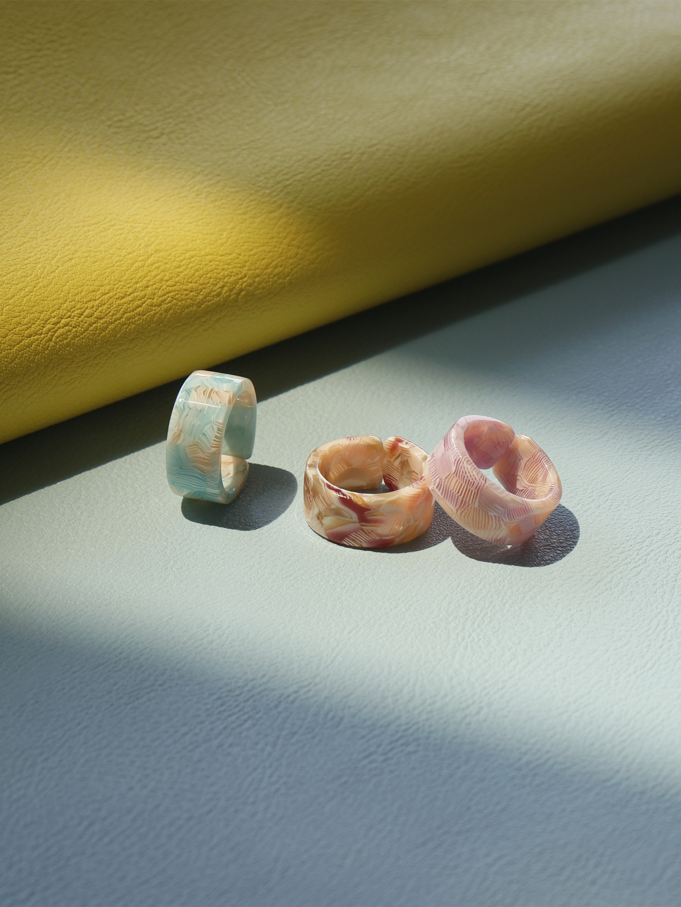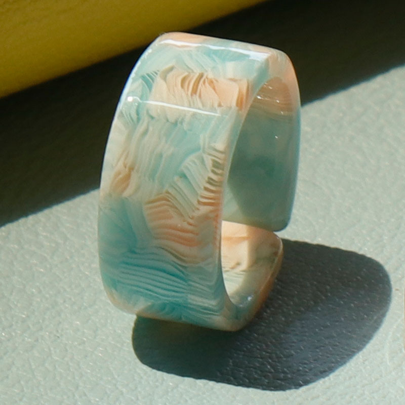 Geometric Acrylic Ring Color Mix and Match Girl's Cute Translucent Resin Fashion Combination European and American Style Suit