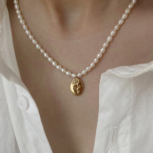 玫瑰吊坠天然淡水珍珠项链14k注金复古轻奢小米珠珍珠锁骨链新款