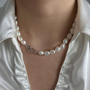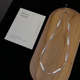 简约s925纯银碎银子项链高级感小众天然巴洛克淡水珍珠锁骨链配饰