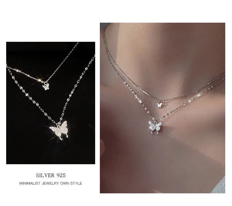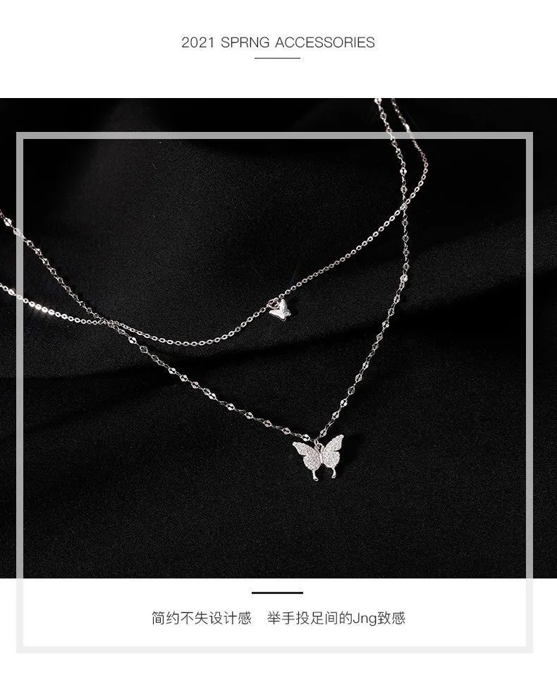 Ins Cold Style Butterfly Double Layer Necklace Does Not Fade, Trendy Clavicle Chain, Elegant Stacking Necklace, Popular Versatile Women's Model