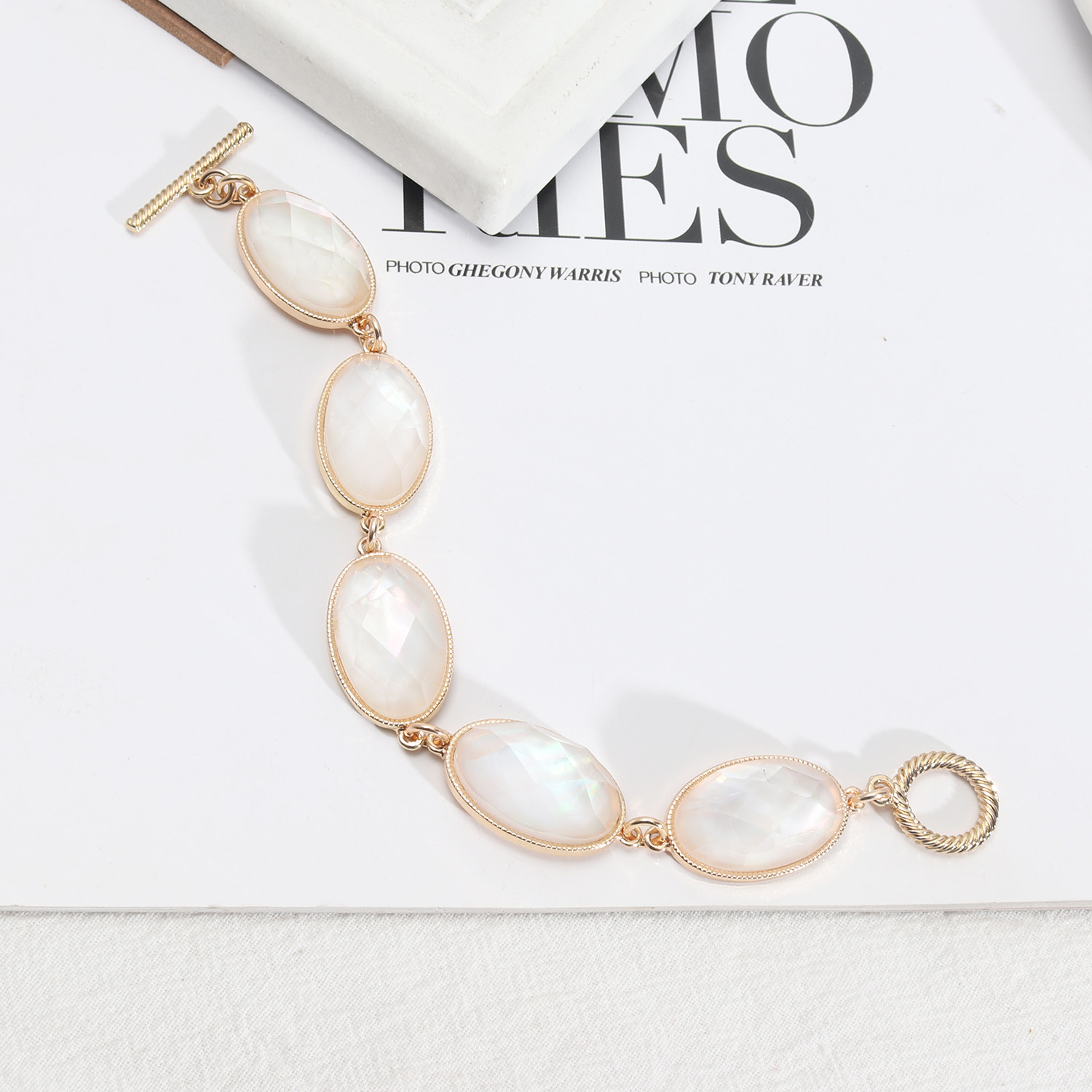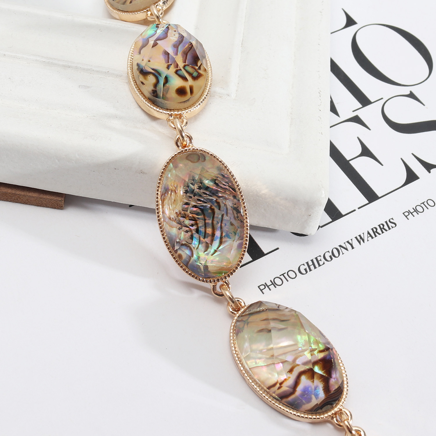 Trendy design European and American style jewelry abalone shell white shell faceted resin texture exquisite girl bracelet