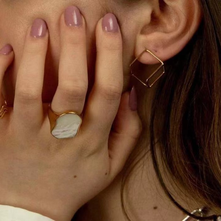 European and American cross-border jewelry ins style opposite-sex Shell stainless steel ring fashion simple 18K titanium steel ring