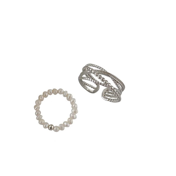 French Retro Freshwater Pearl Metal Staggered Opening Ring Women's Korean-style All-match Elegant Ring Cold Style