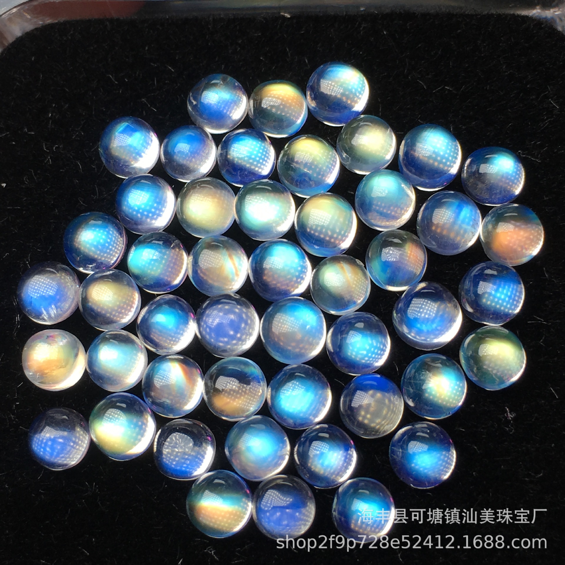 Natural India Blue Moonstone Bare Stone Ring Surface Round Flat Base Plain Surface Arc Surface Net Body Moonstone Bare Stone Wholesale
