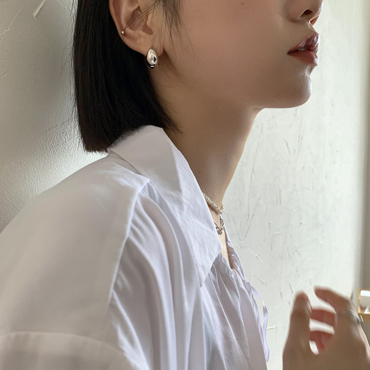 New Chinese Earrings 925 Silver Pin Earrings Women's Simple Cold Wind Drop Earrings Round Circle Ear Jewelry