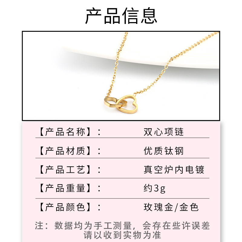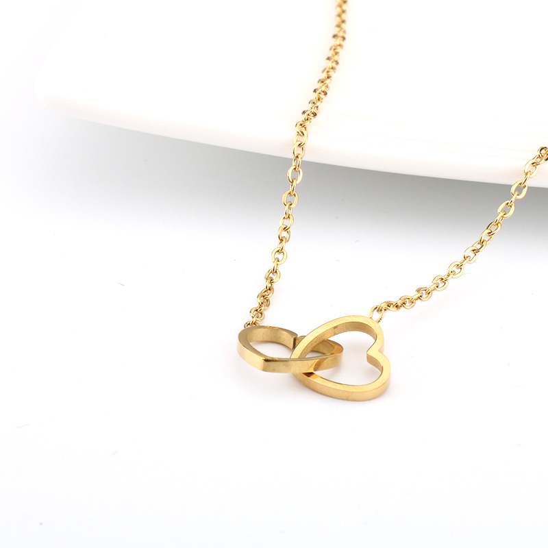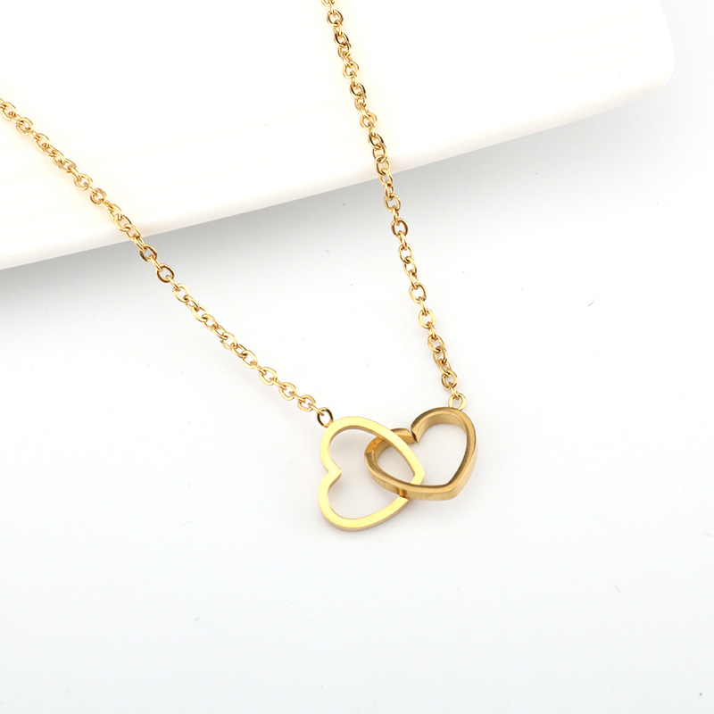 Fashionable Clavicle Chain Heart-To-Heart Double Circle Necklace Double Peach Heart Heart Pendant Necklace Female Ins Personalized Trendy Jewelry