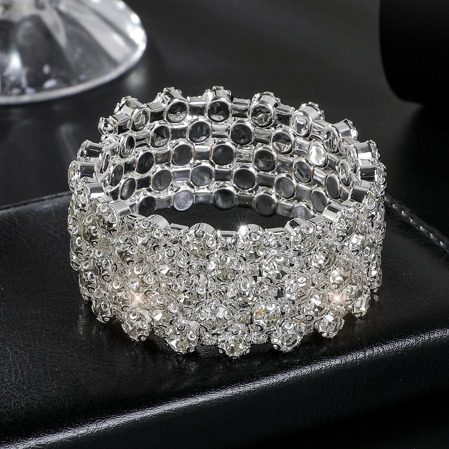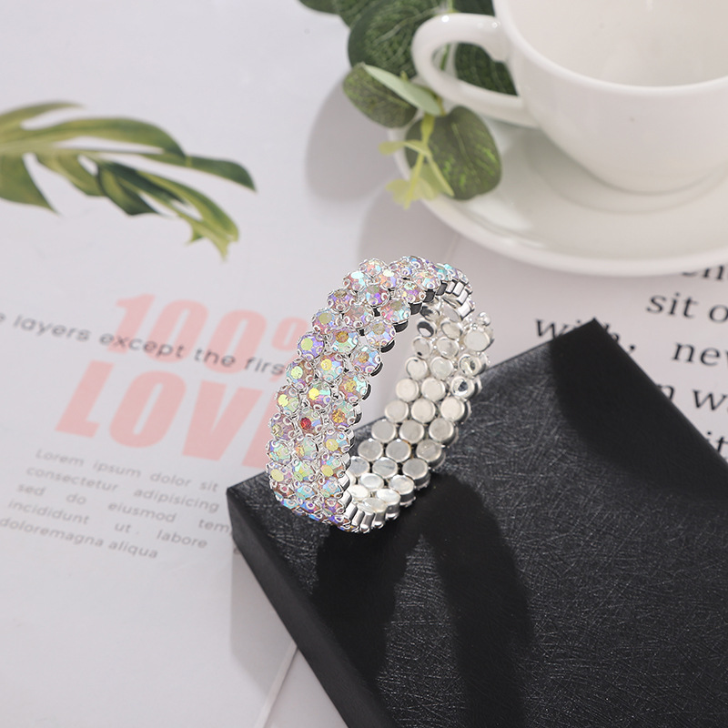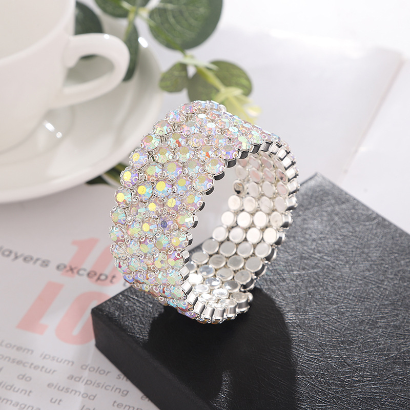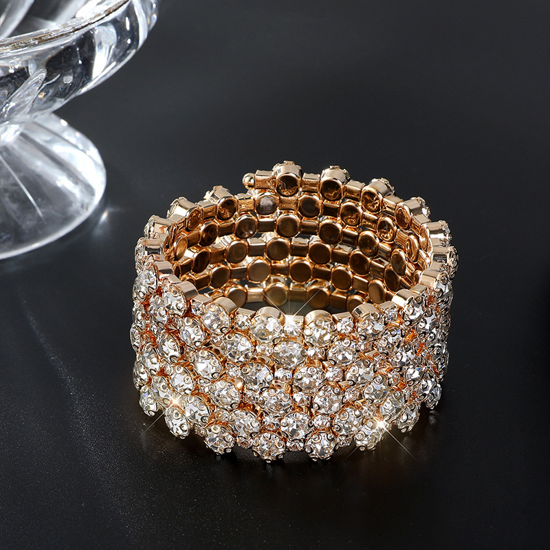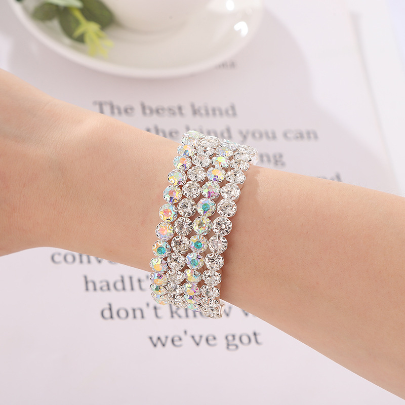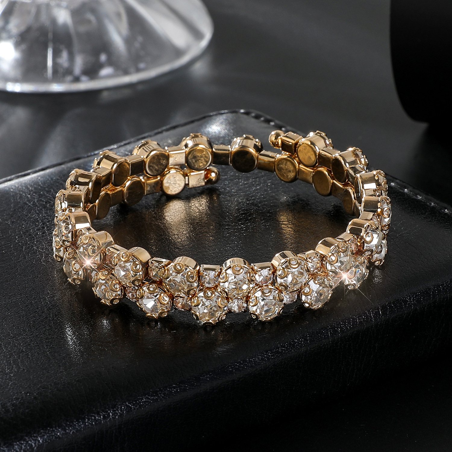 【宝贝名称】 新款跨境多层缠绕螺旋手镯 新娘百搭镶钻满钻弹力手镯水晶手链女