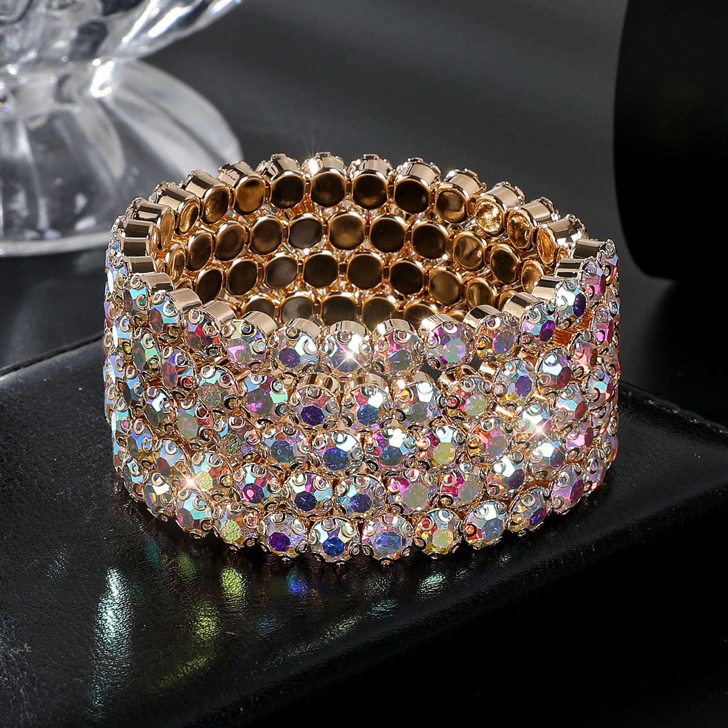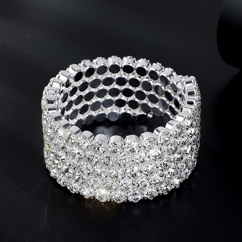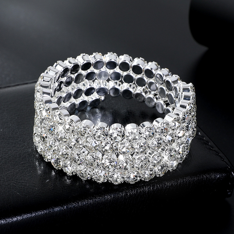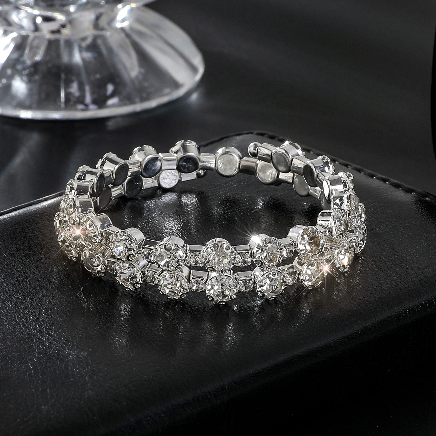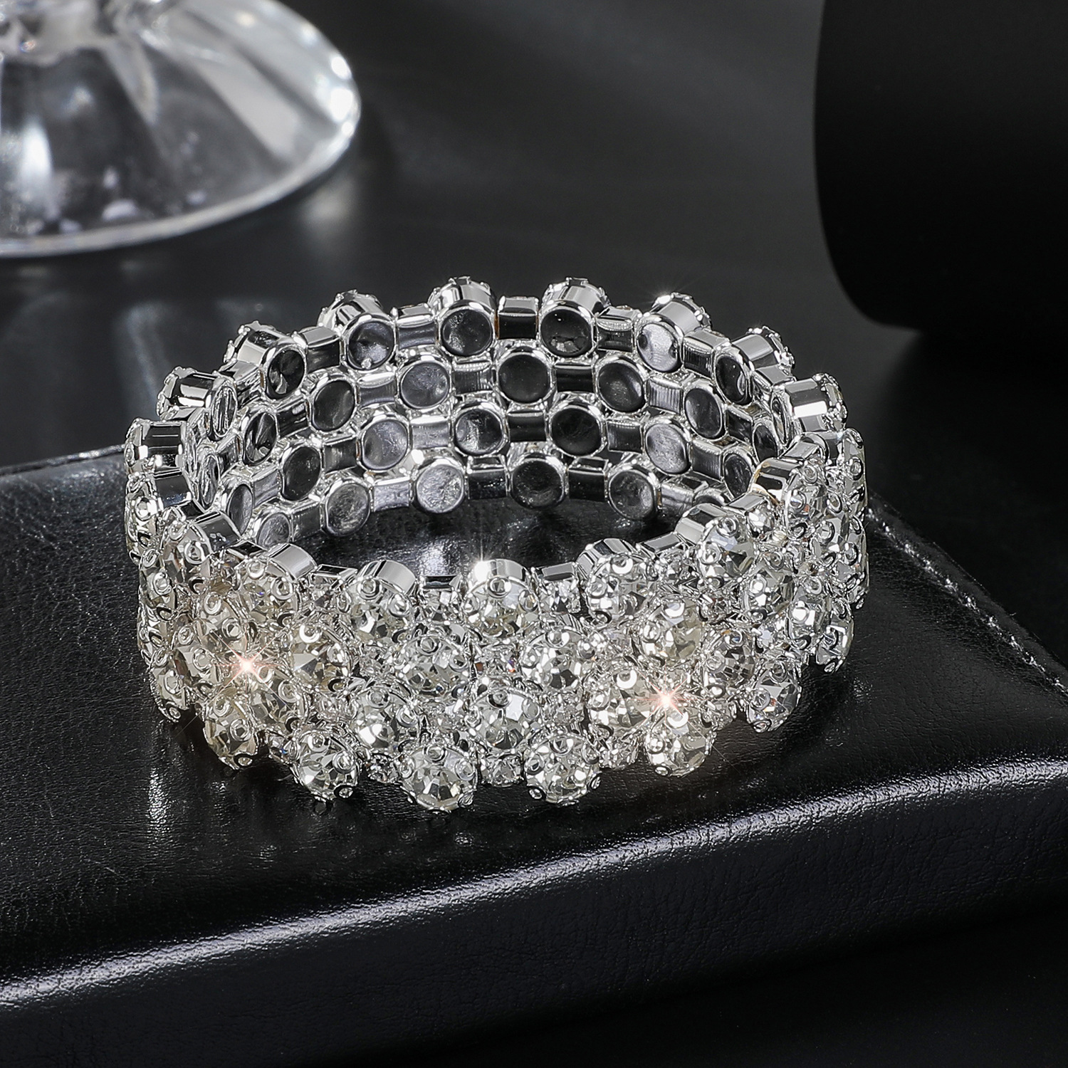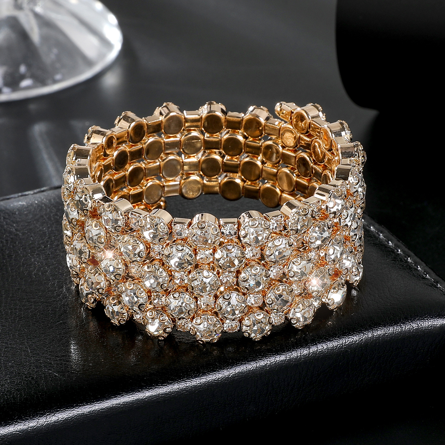 【宝贝名称】 新款跨境多层缠绕螺旋手镯 新娘百搭镶钻满钻弹力手镯水晶手链女