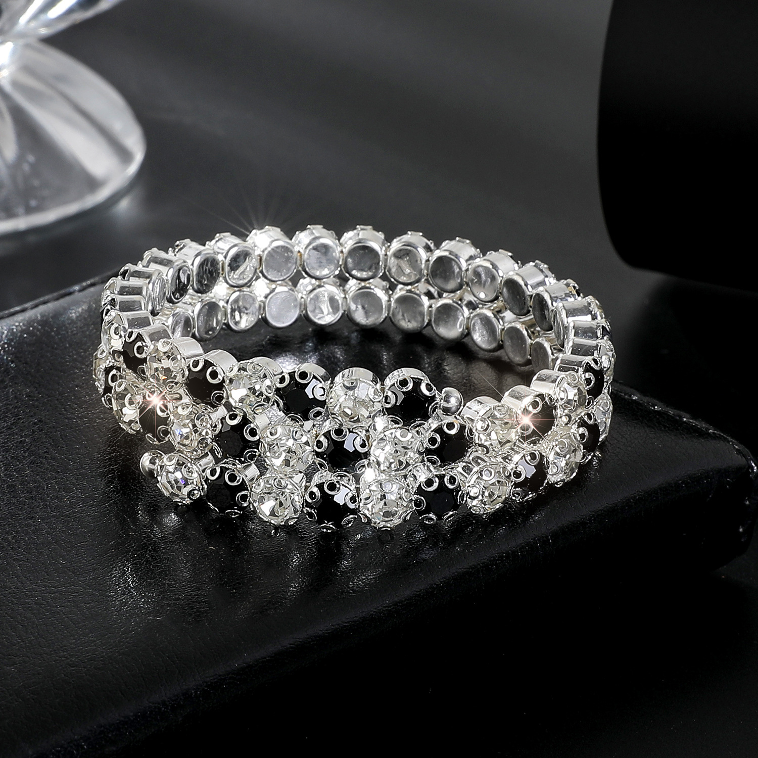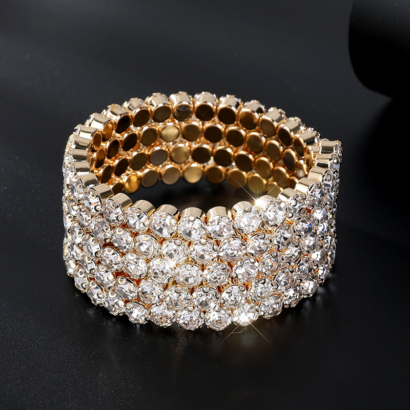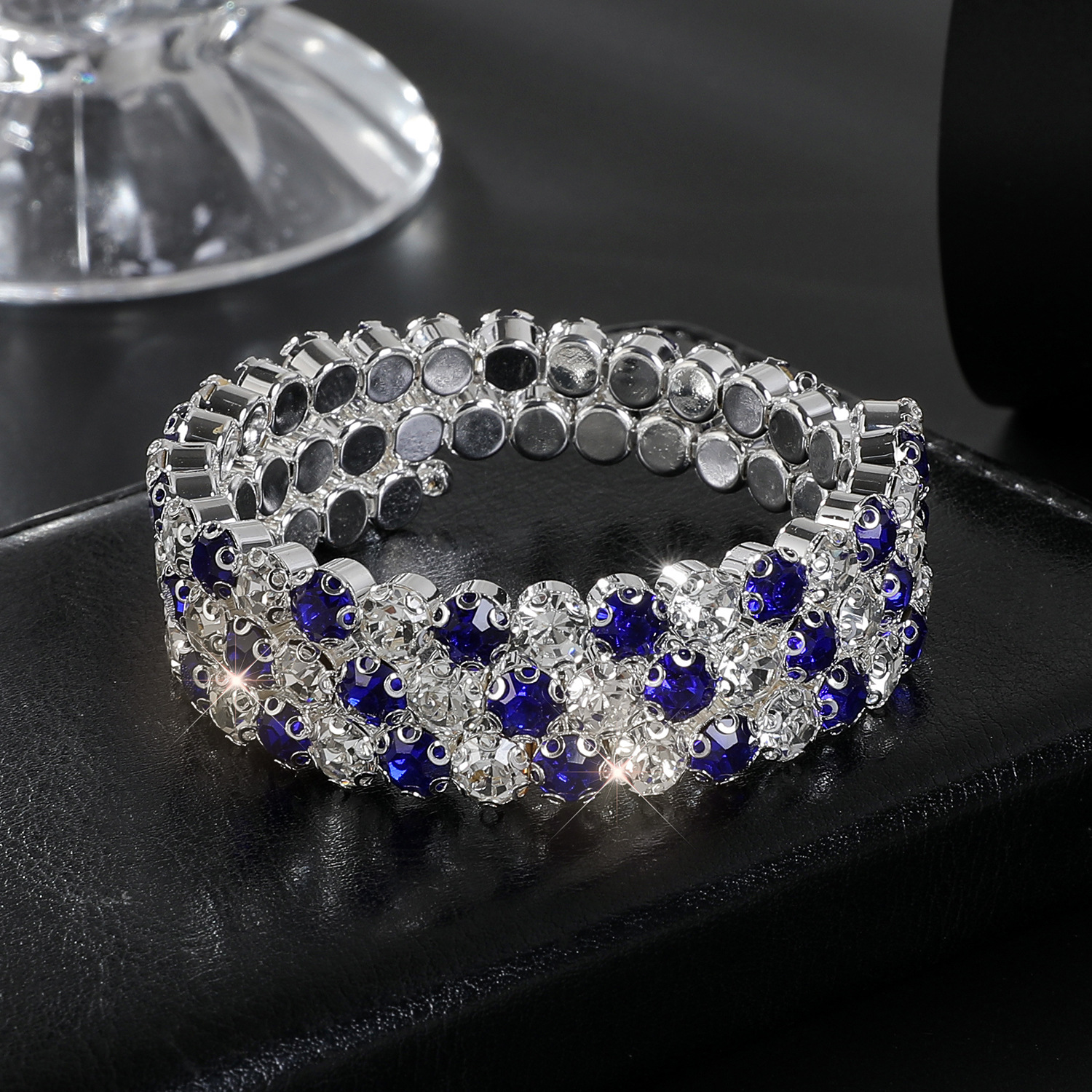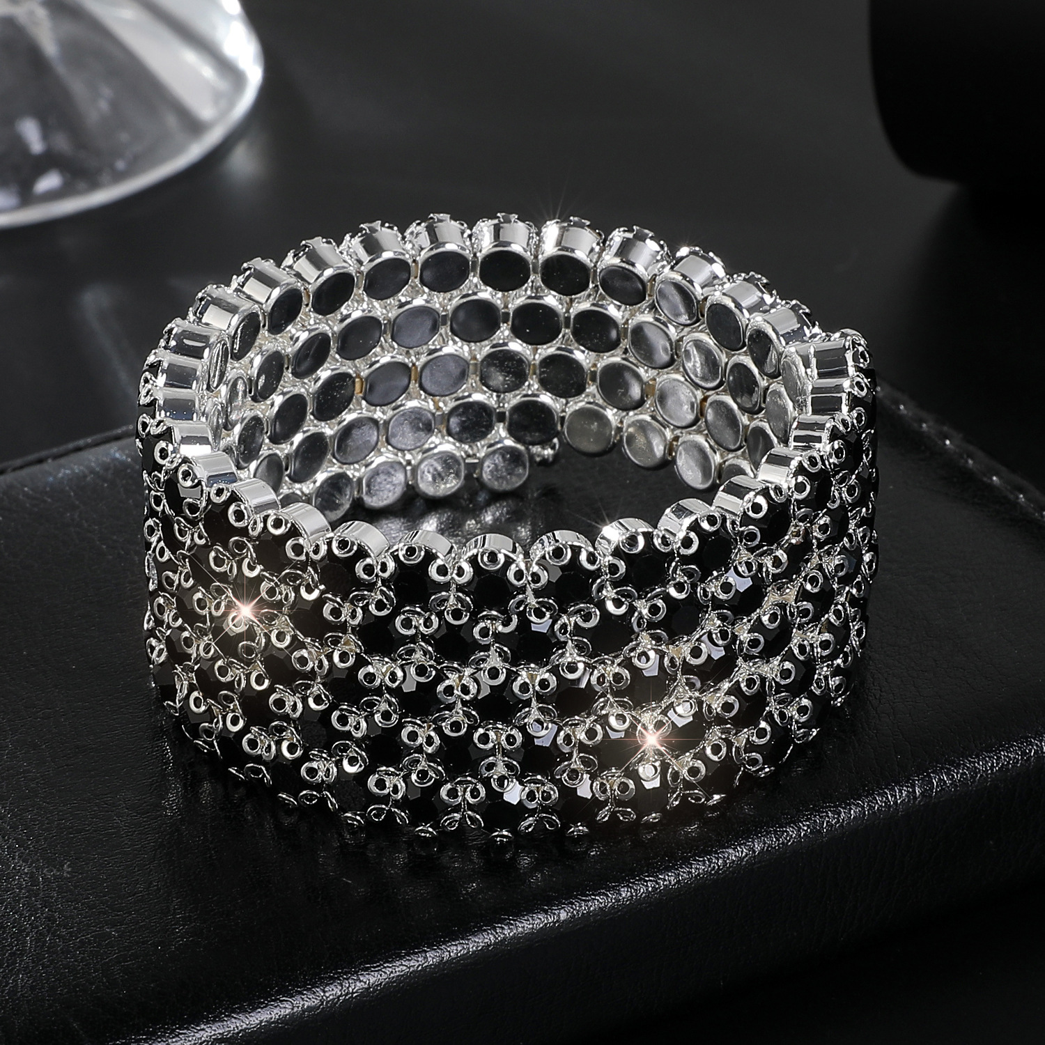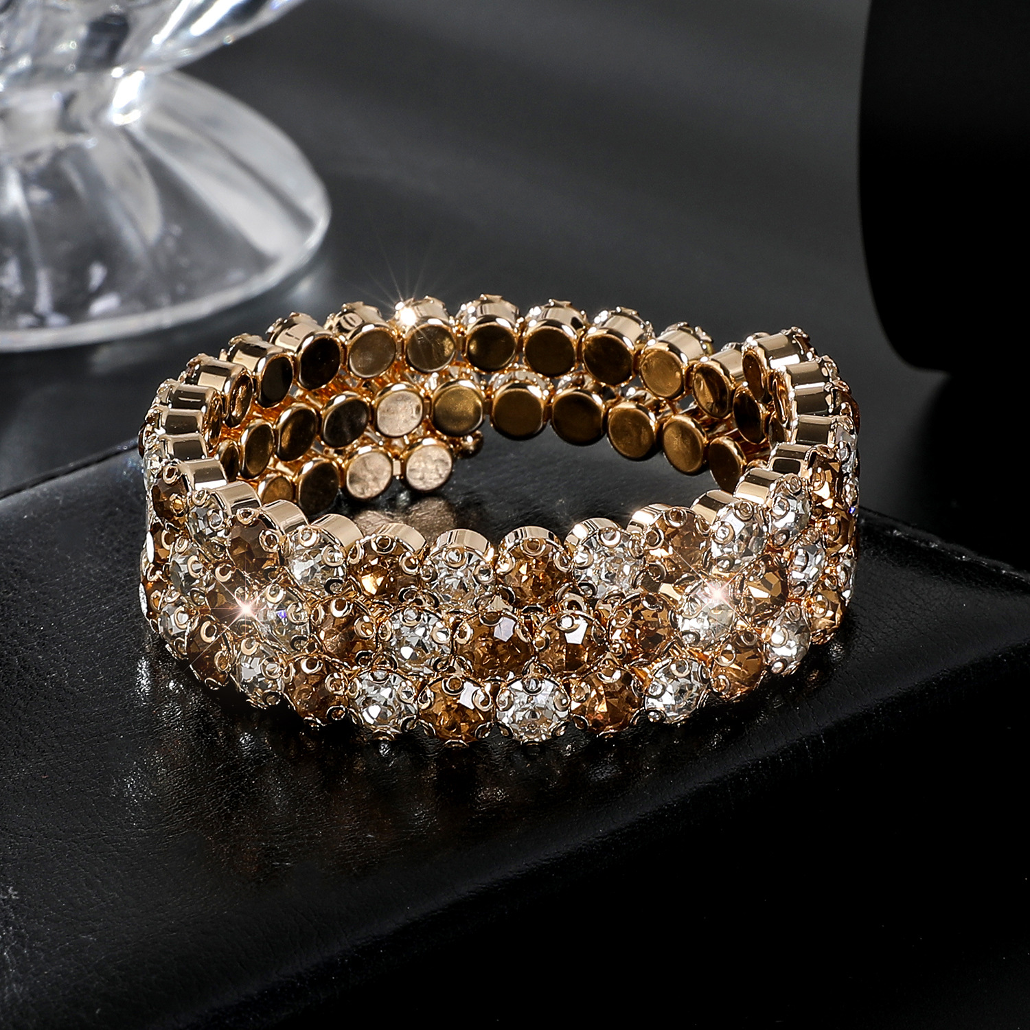 【宝贝名称】 新款跨境多层缠绕螺旋手镯 新娘百搭镶钻满钻弹力手镯水晶手链女