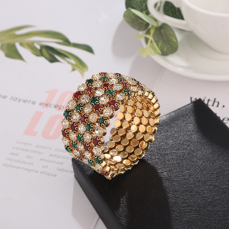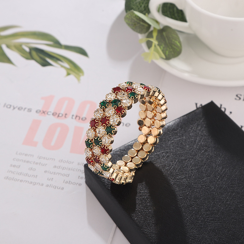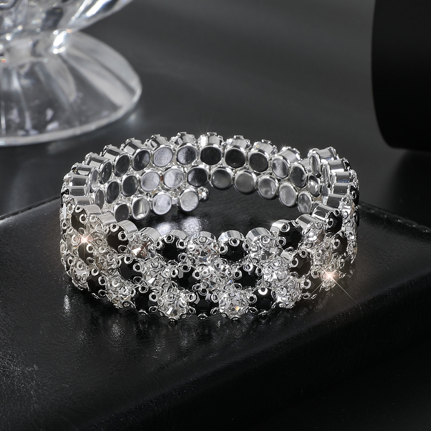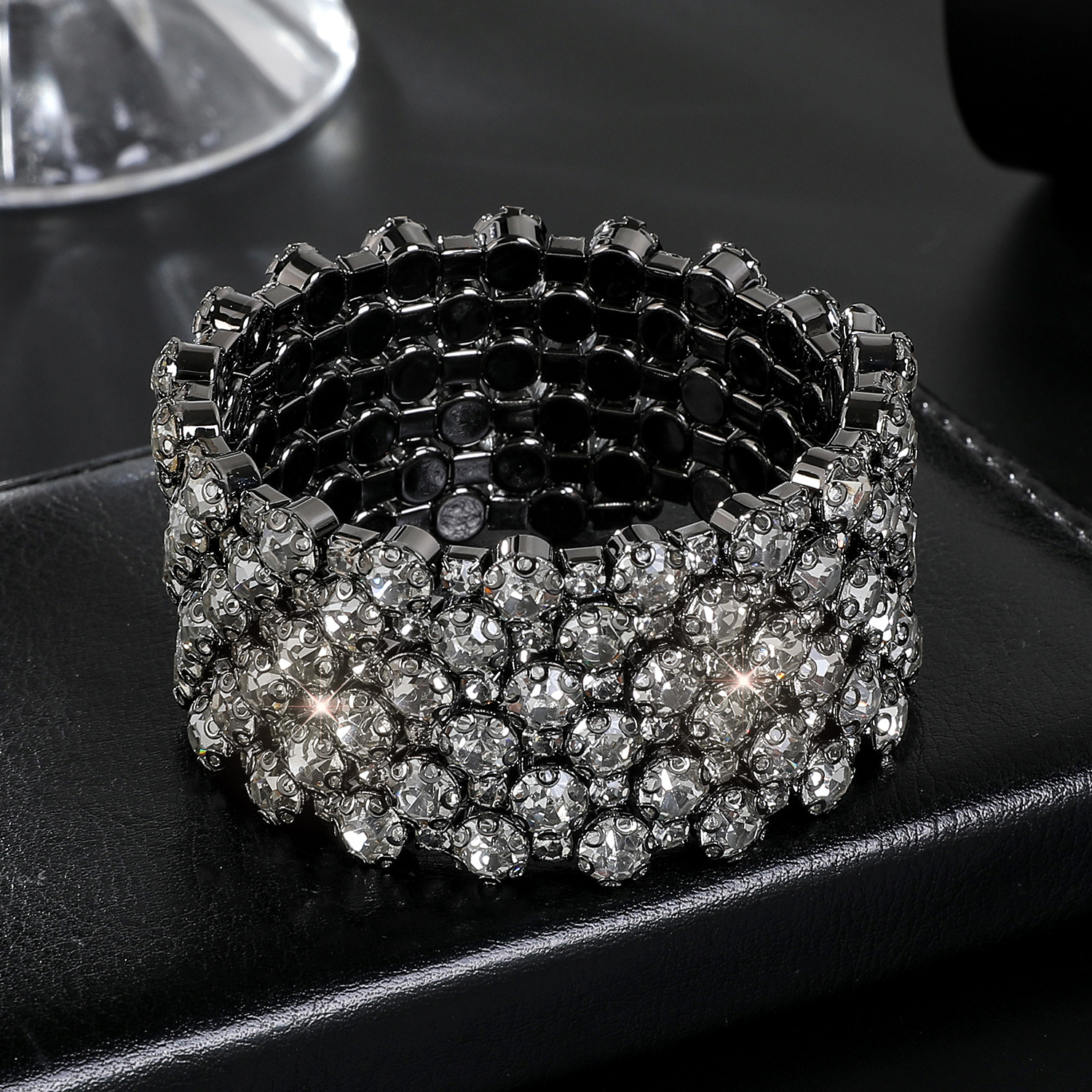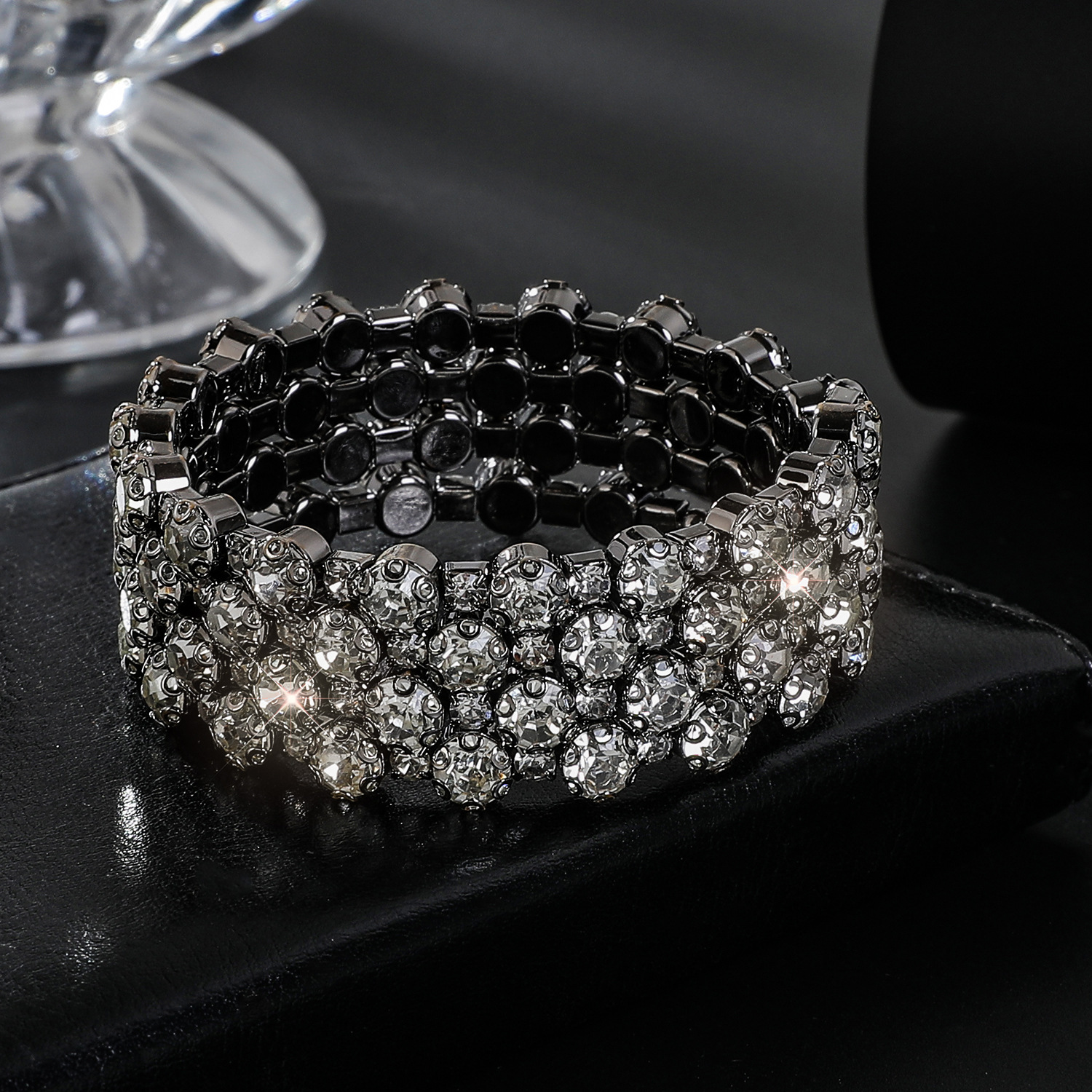 【宝贝名称】 新款跨境多层缠绕螺旋手镯 新娘百搭镶钻满钻弹力手镯水晶手链女
