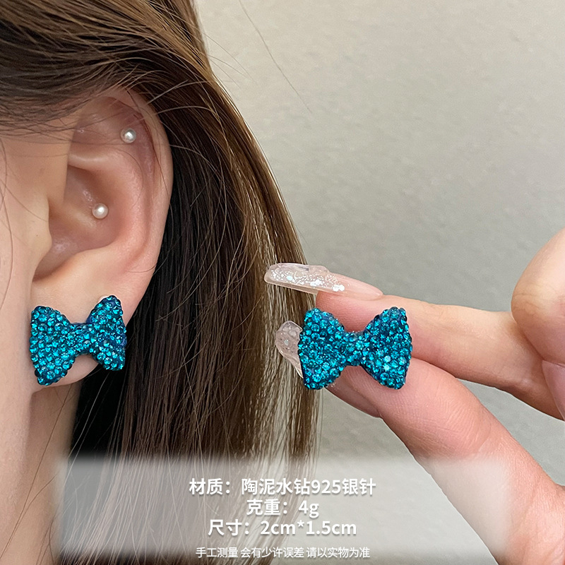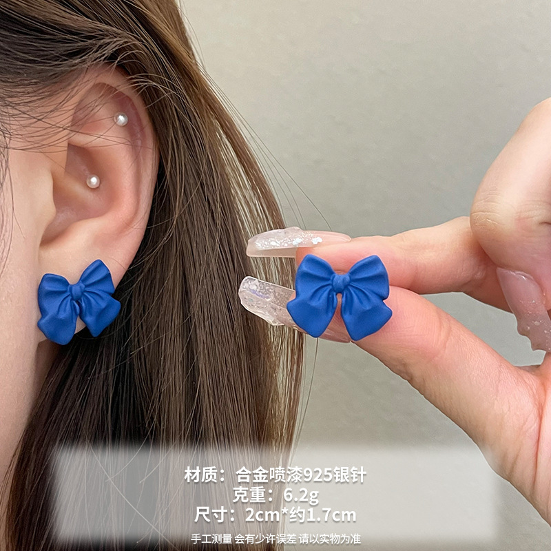 Color: 0416 blue bow without pierced ears, welded ear clips