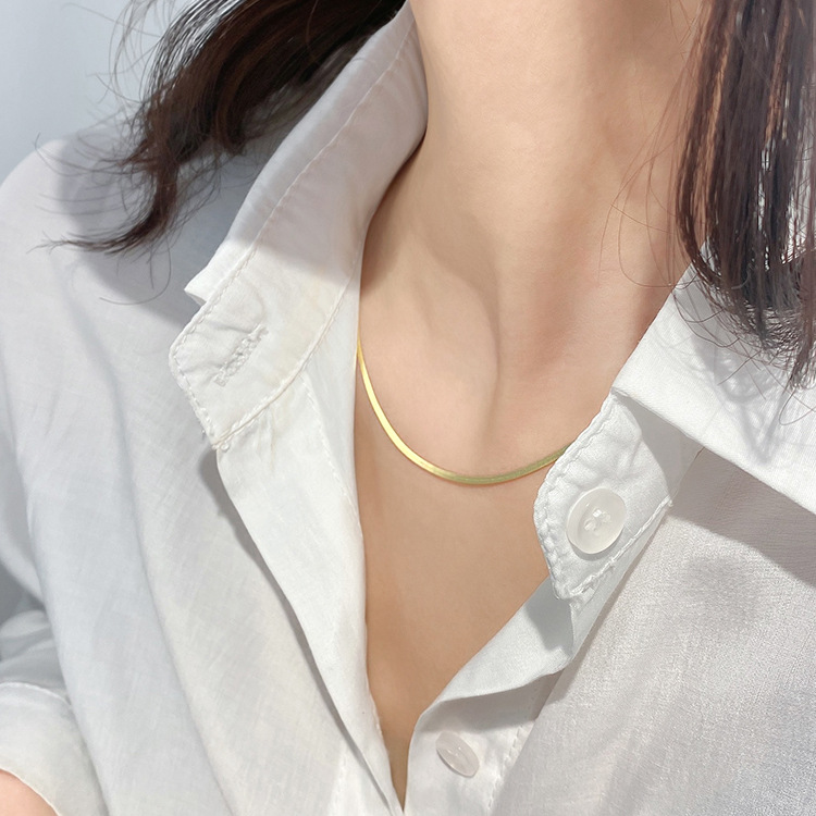 Plain Silver Single-chain Blade Necklace Entry Luxury Niche Collar Chain Necklace Cyber Celebrity Necklace Female Niche High-end Design Sense