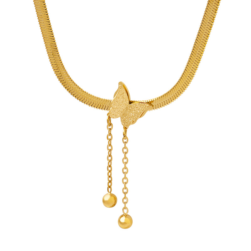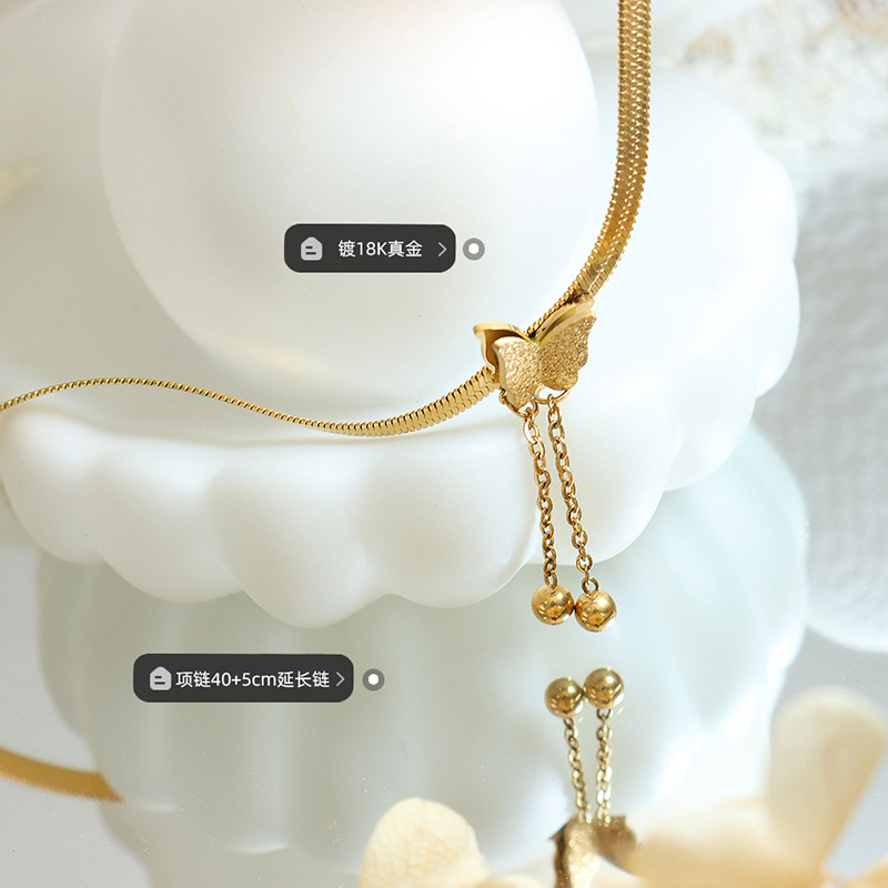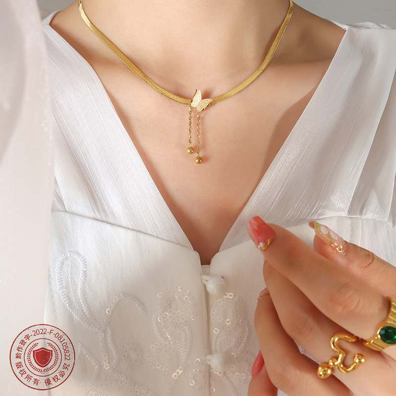 Blade Chain Frosted Butterfly Tassel Steel Beads Sexy Necklace Mori Elegant Gentle Niche Personality Jewelry P513