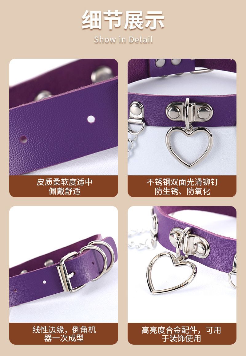 I Love My Best Friend Fang Yiyi Wang Xiaochen's Same Necklace European and American Style Punk Heart-Shaped Lock Leather Collar Neck Strap Wholesale
