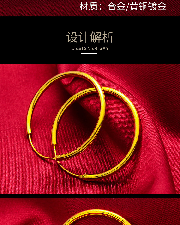 Vietnam sand gold big earrings smooth 30mm wide gold plated big ear ring net red face thin European coin smooth earrings