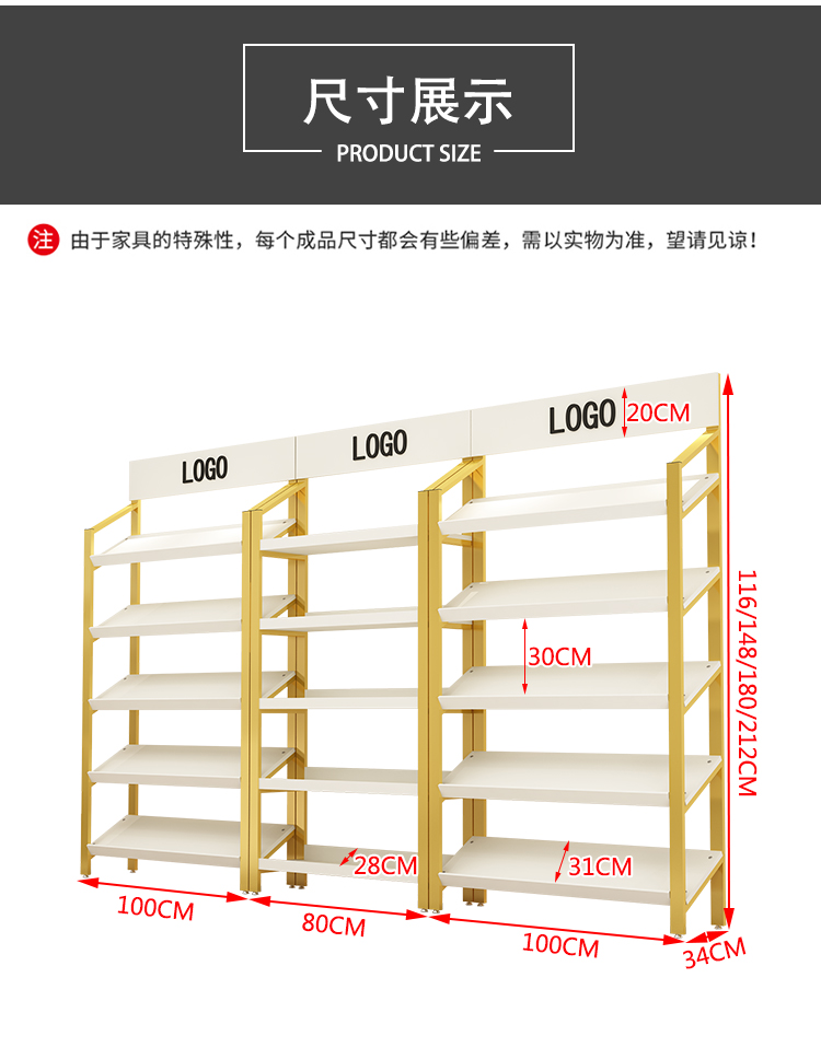 Specifications: The inclined five-layer 100 is long * 34 deep * 180 high
