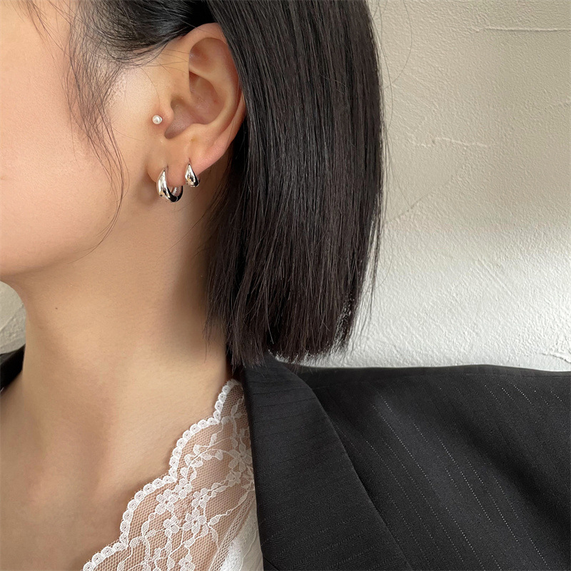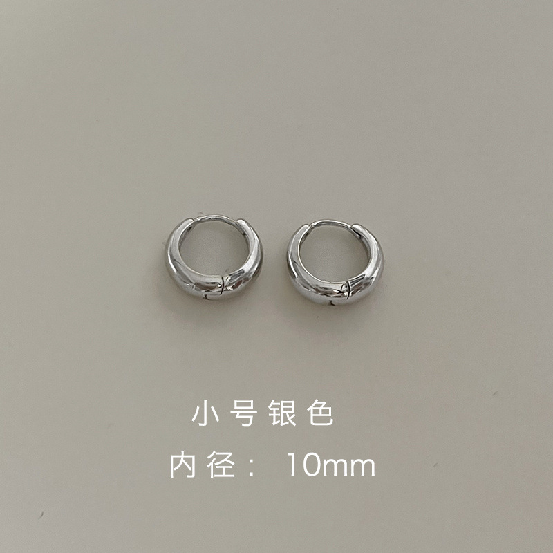 Plain ring earrings 925 silver needle women's simple elegant ins cold style niche hip hop European and American circle fashion Men's earrings