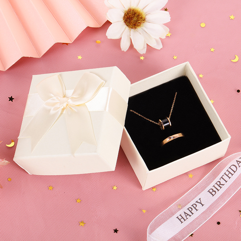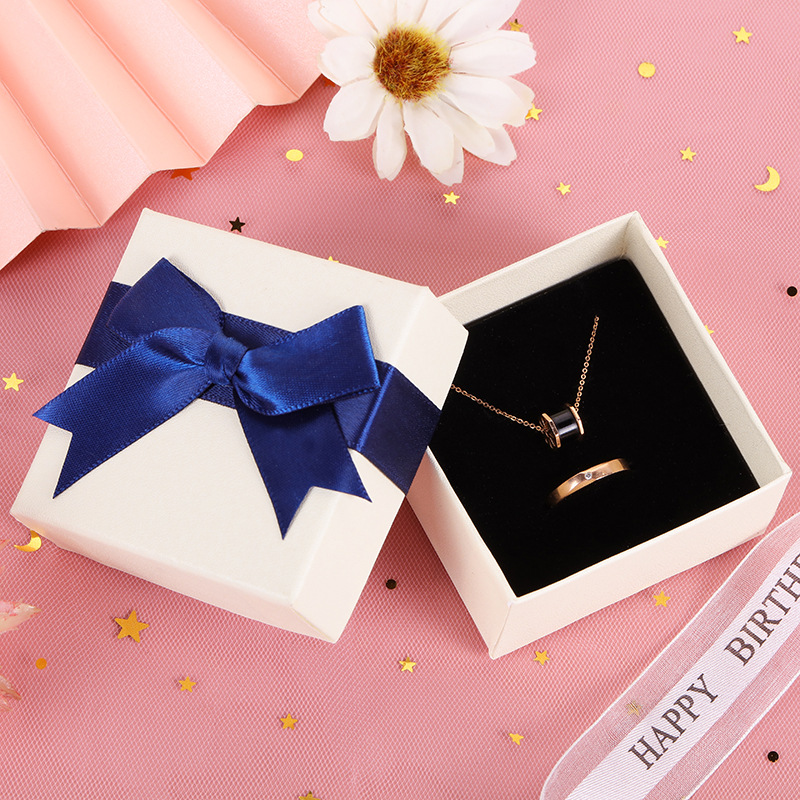 Spot Wholesale Fashion Necklace Packaging Box Bow Earring Carton Heaven and Earth Cover Cardboard Gift Box Ring Jewelry Box