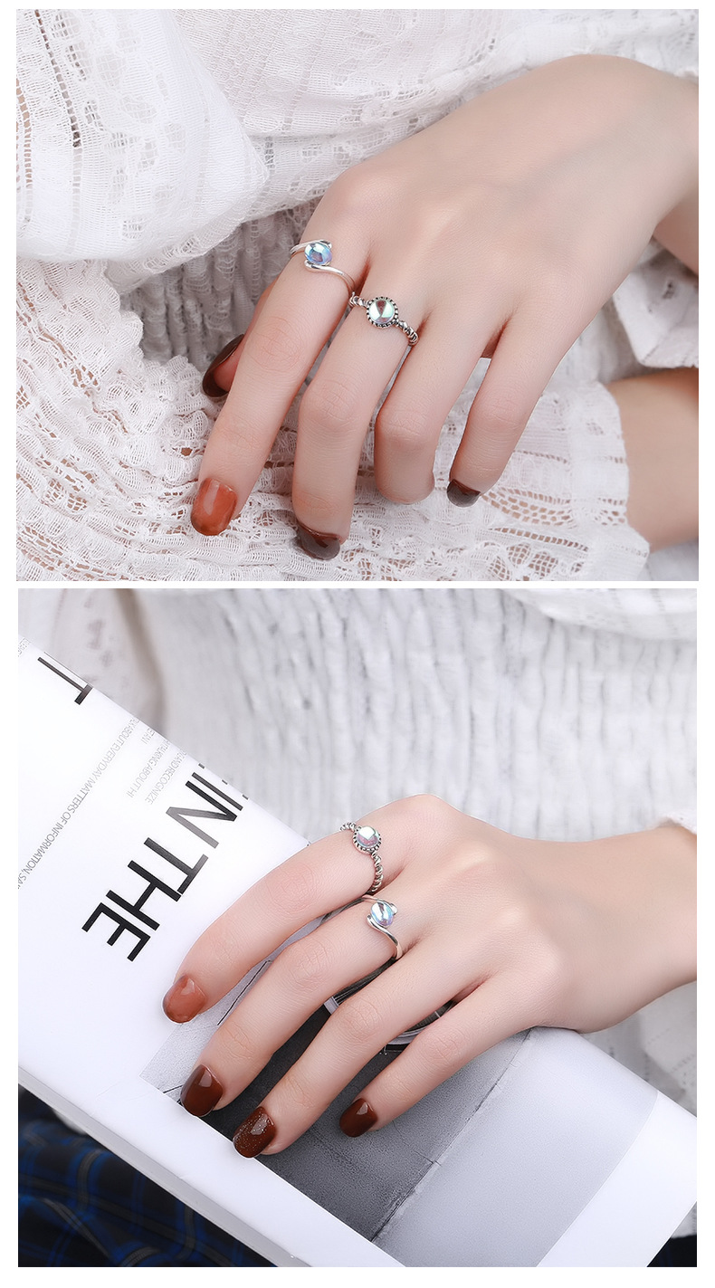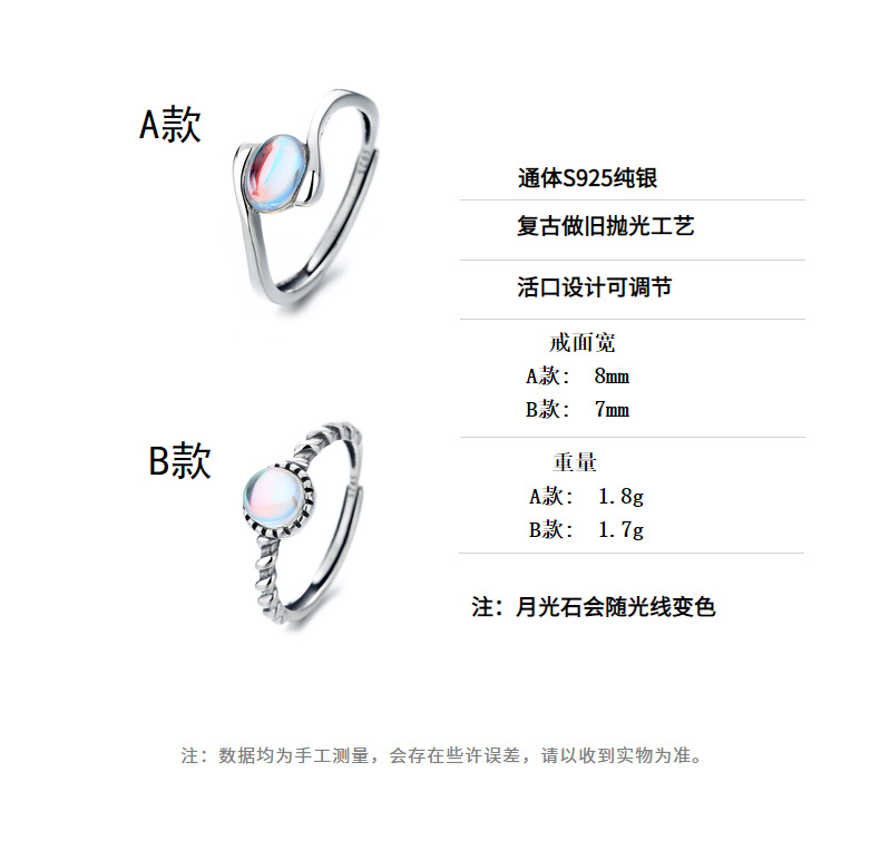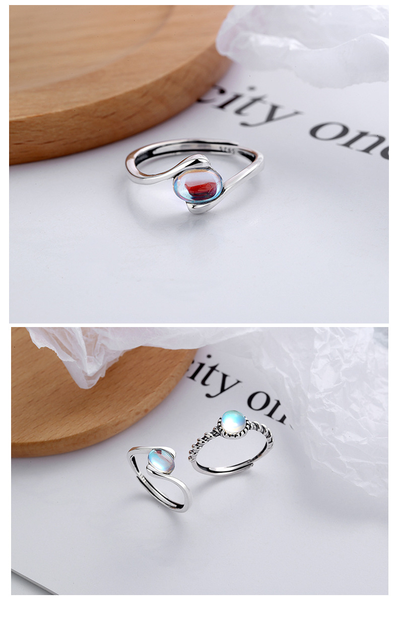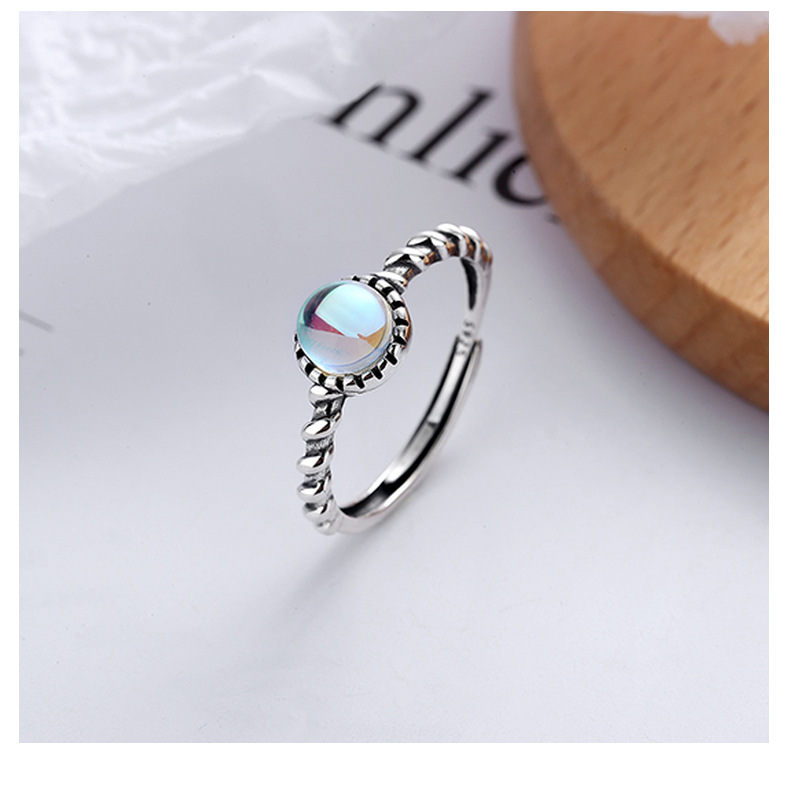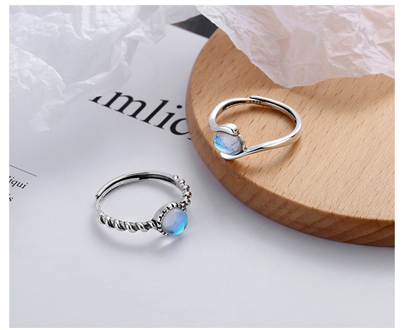 Yun Chao Xuan S925 Sterling Silver Korean Style Temperament Ladies Spiral Pattern Ring Support Blue Moonstone All-match Open Ring for Women