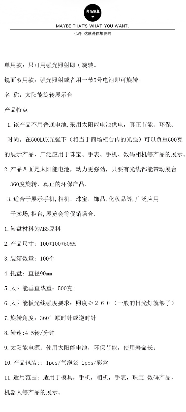 Jewelry Display Stand Solar Display Stand Mobile Phone Turntable Counter Shop Automatic Rotating Table Jade Display Stand