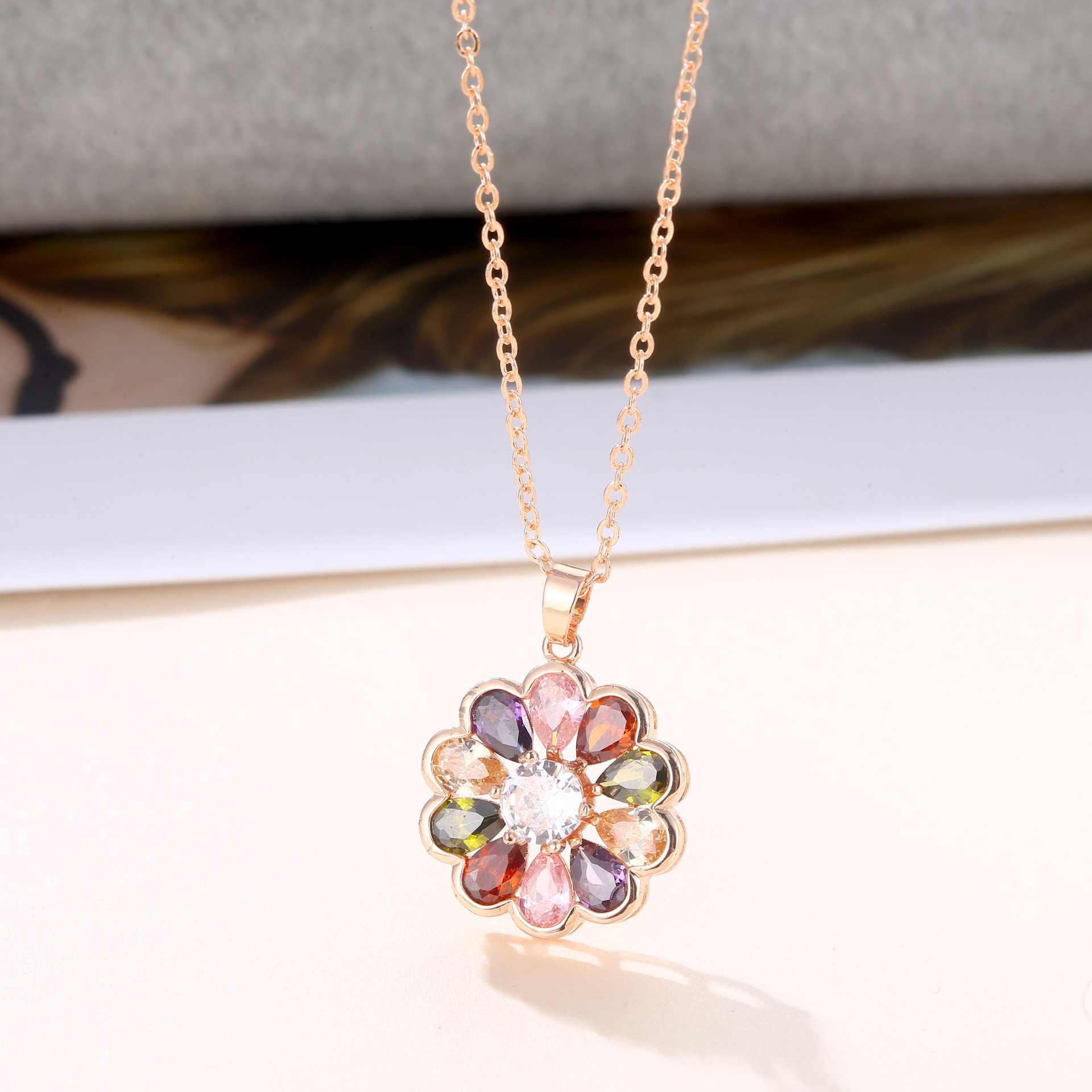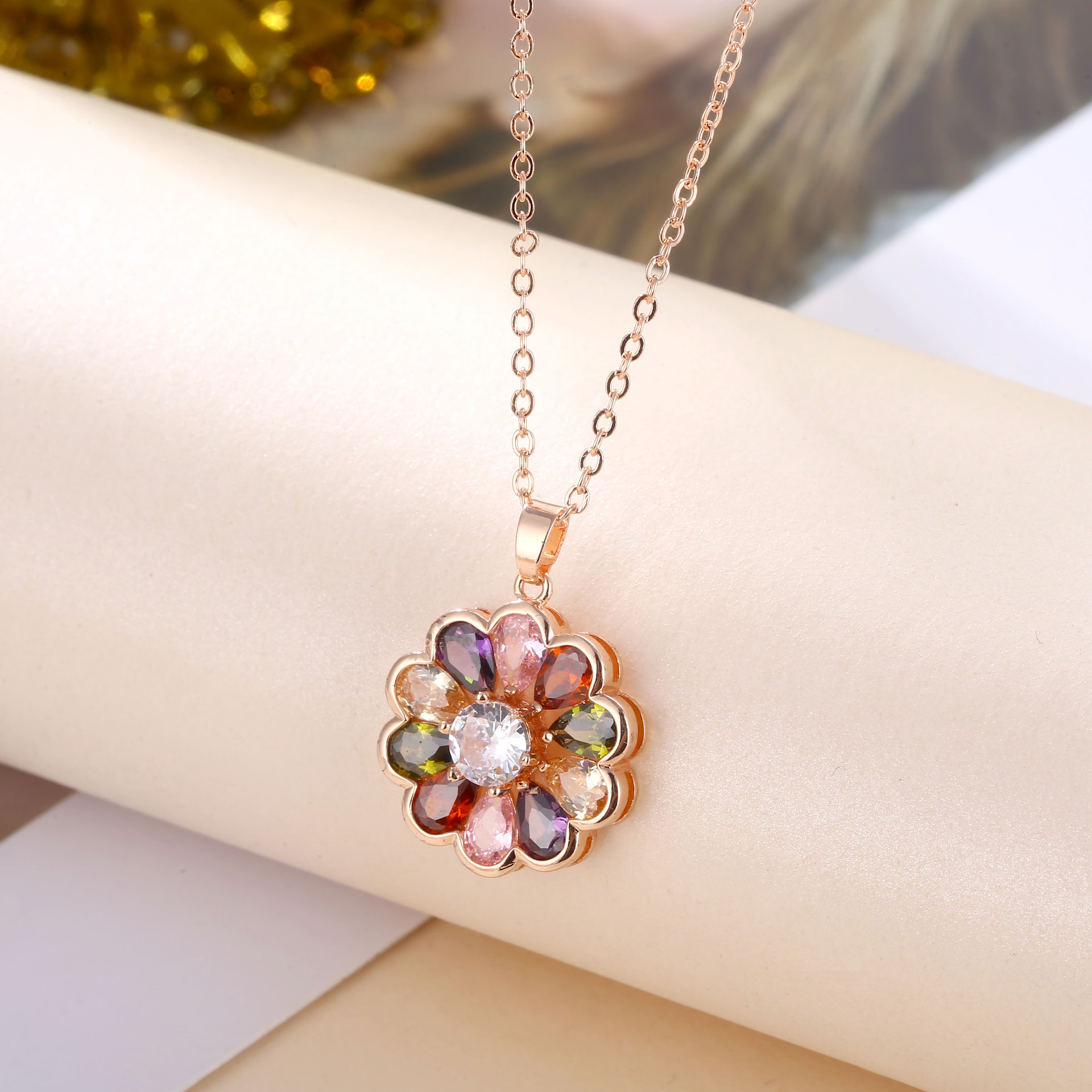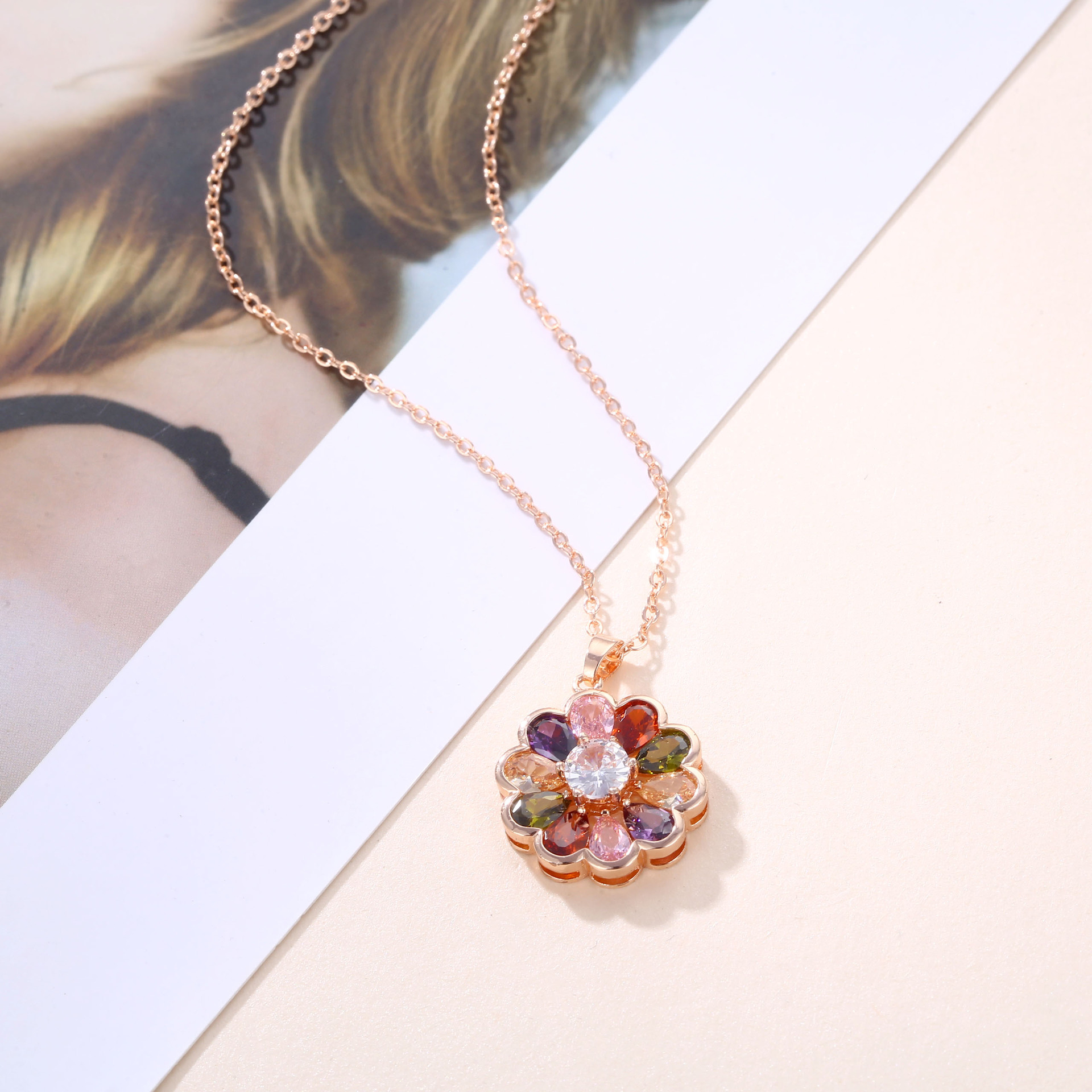 Flower Rose Gold Necklace Kérastase Jewelry Live Broadcast Hot Style Small Clear Ladies Source Factory One Piece Wholesale