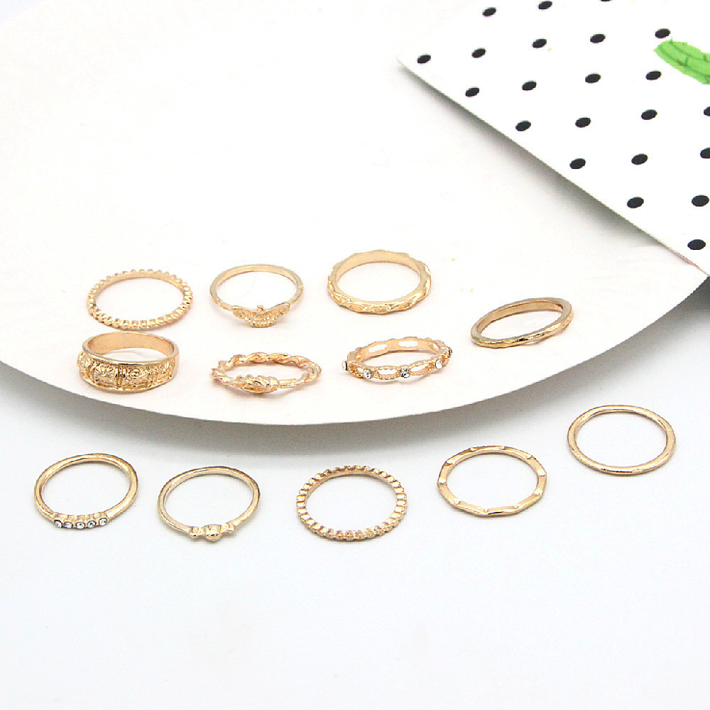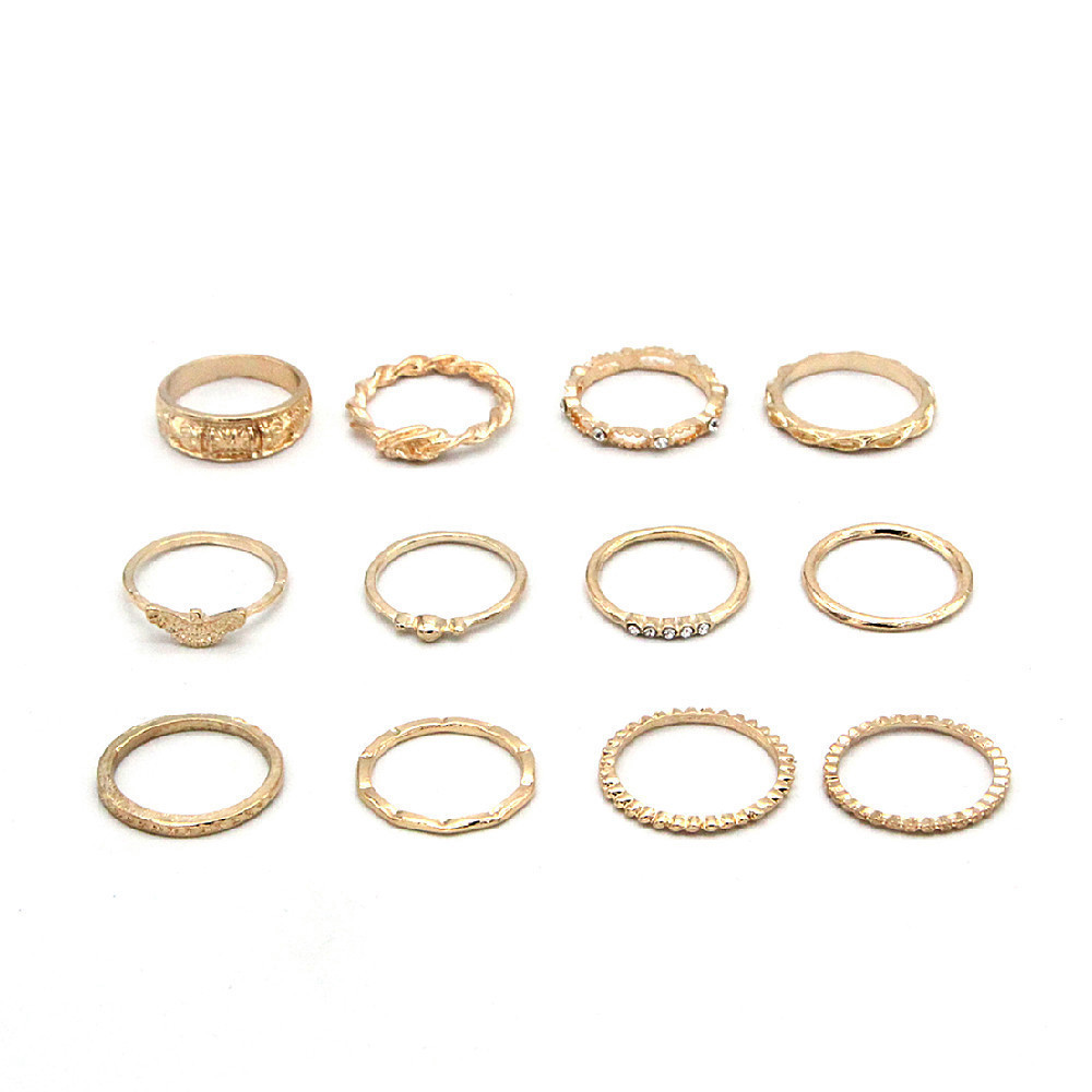 European and American Cross-Border Jewelry, Retro Diamond-Encrusted Eagle Wrapped Knotted Fashion 12-Piece Set Ring Joint Ring