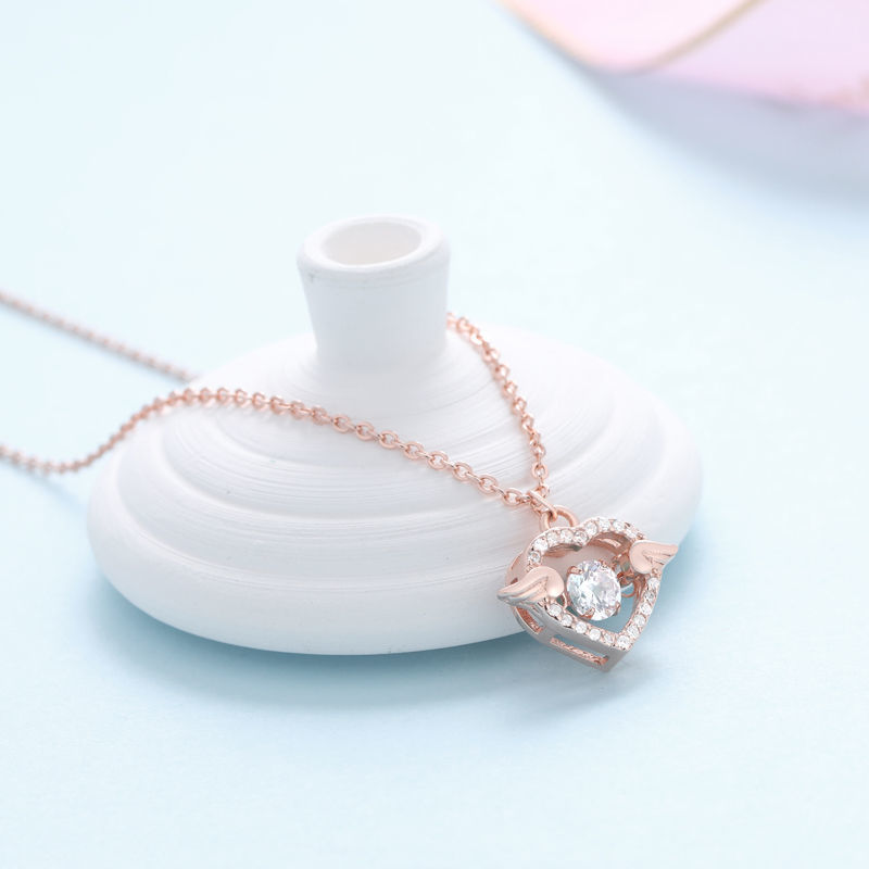 跳动的心钛钢灵动项链女心形天使之翼锁骨链韩版简约时尚流行吊坠