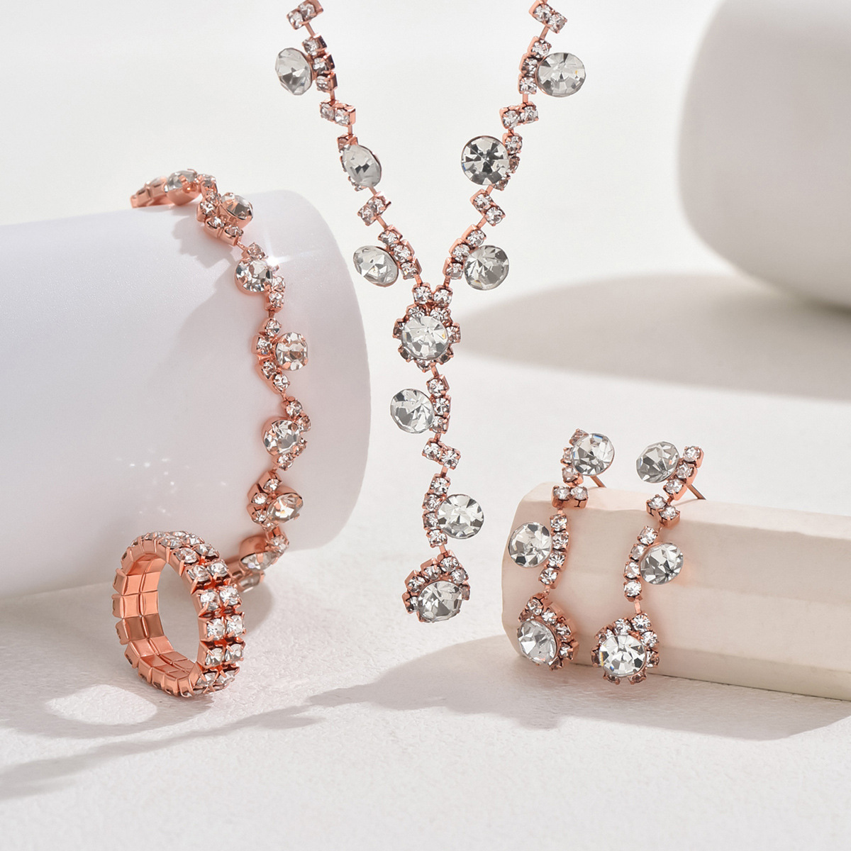 Color: 483747+424-2 rose gold rhinestone necklace earrings bracelet ring