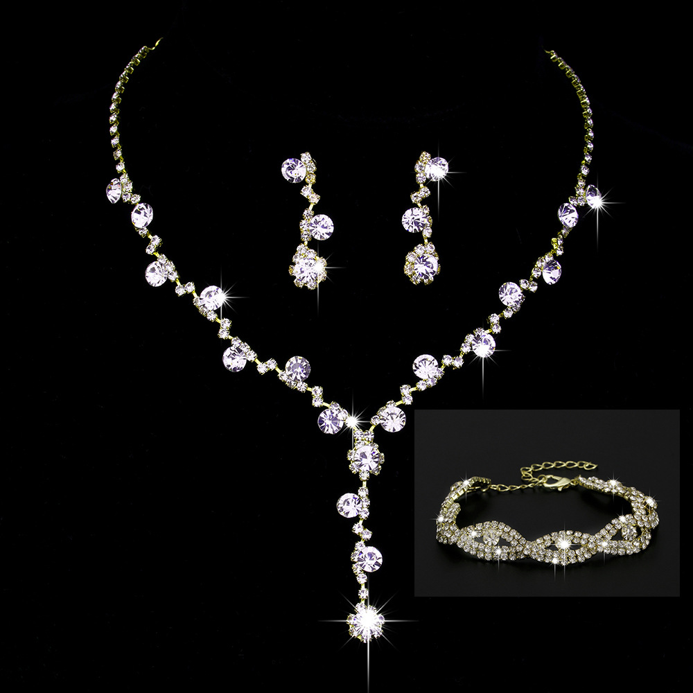 Color: 483747 gold rhinestone necklace earrings bracelet