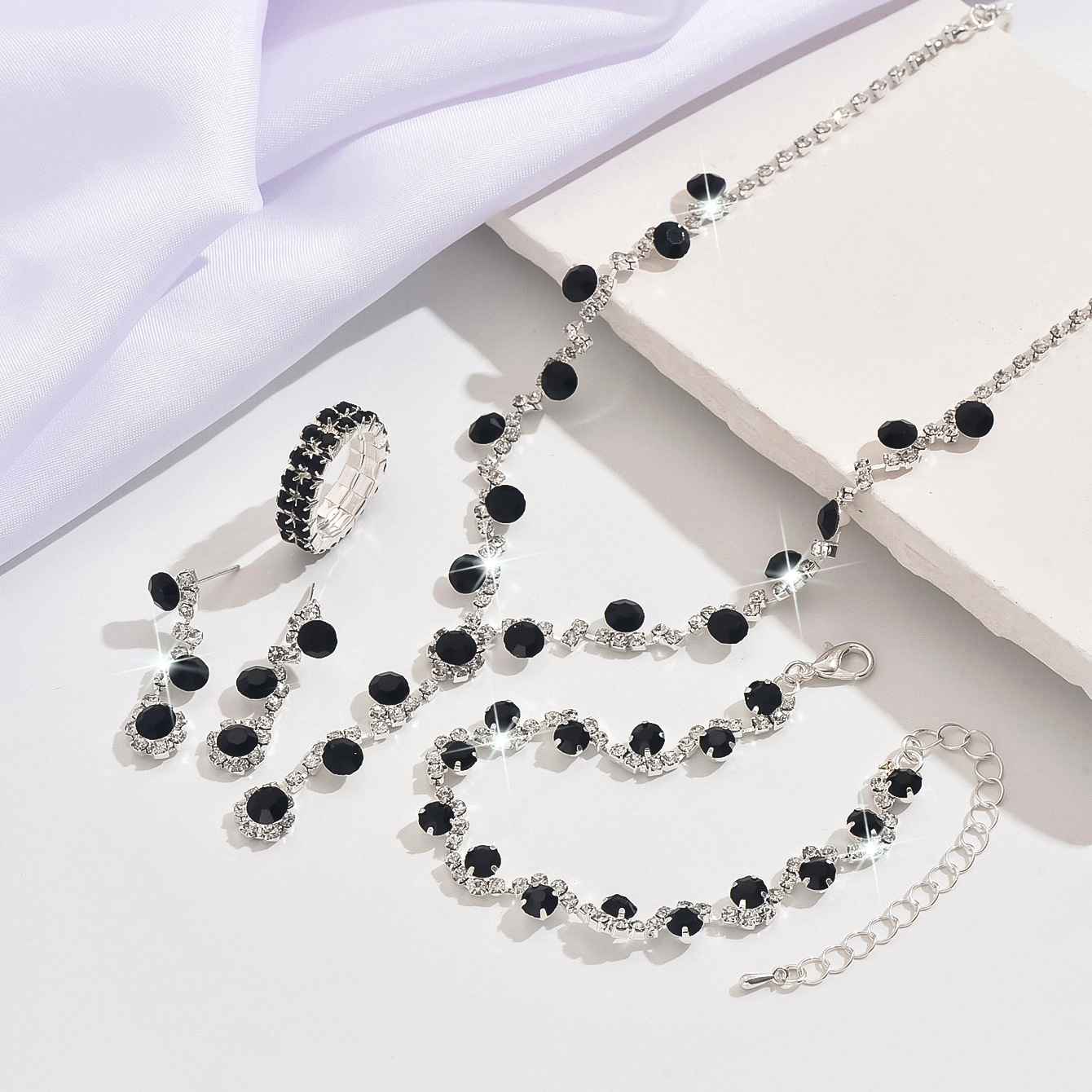 Color: 483747+424-2 silver black necklace + earrings + bracelet + ring silver black