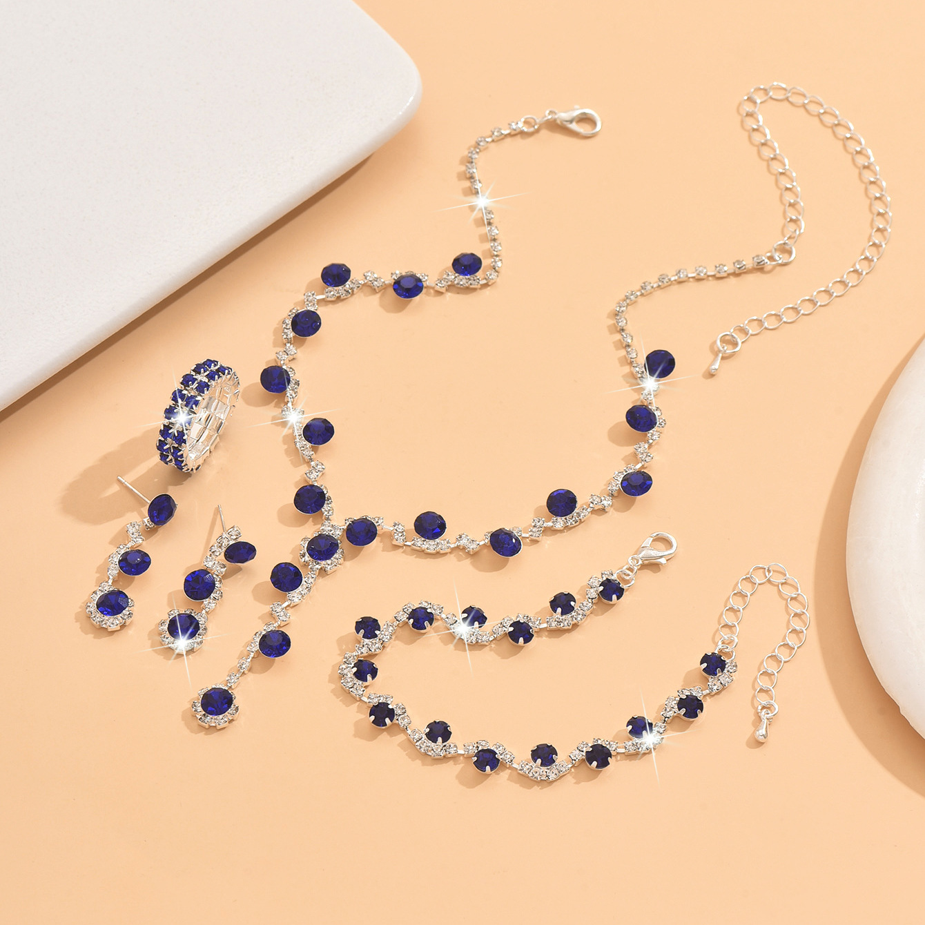 Color: 483747+424-2 sapphire blue necklace + earrings + bracelet + ring sapphire blue