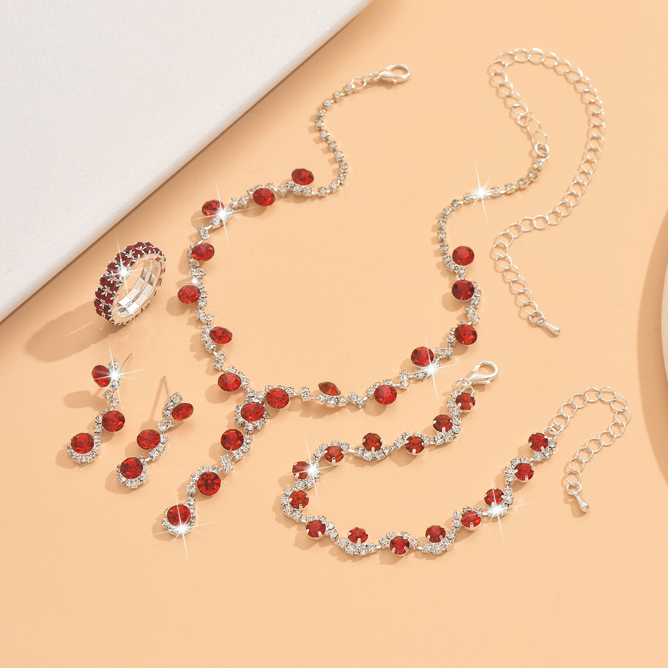 Color: 483747+424-2 silver red necklace+earrings+bracelet+ring red