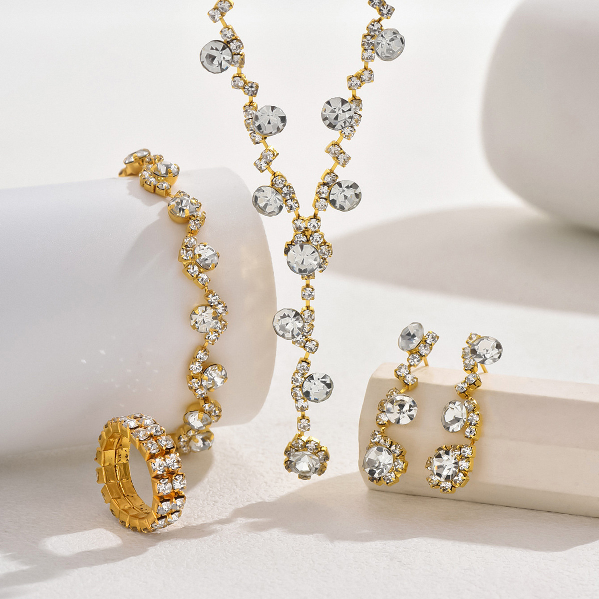 Color: 483747+424-2 gold rhinestone necklace earrings bracelet ring