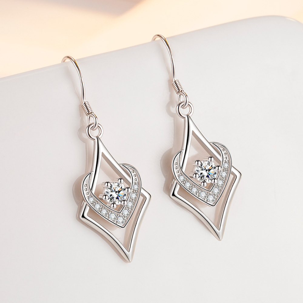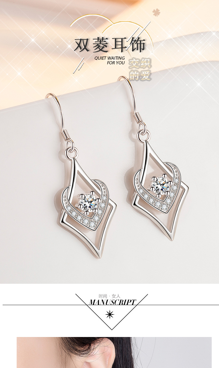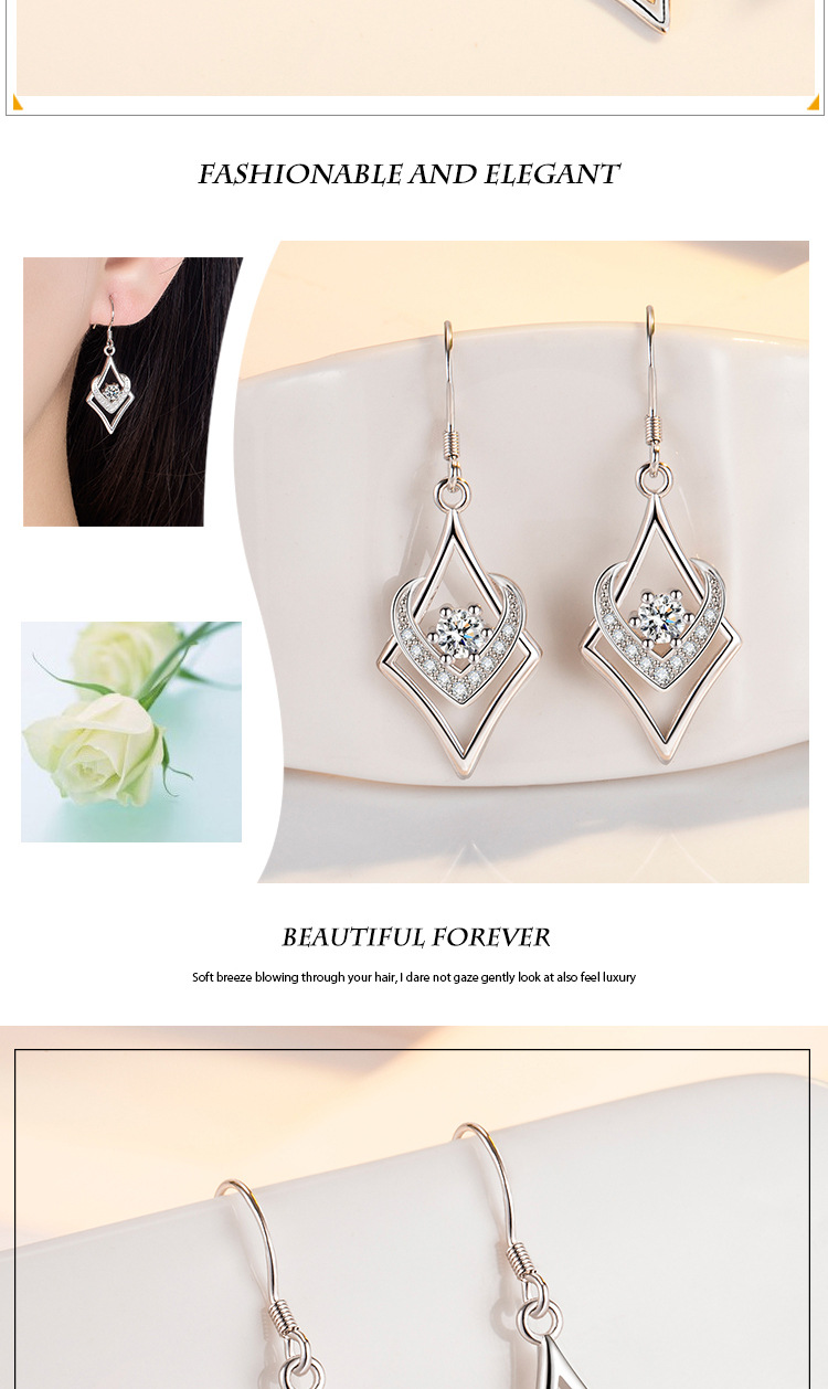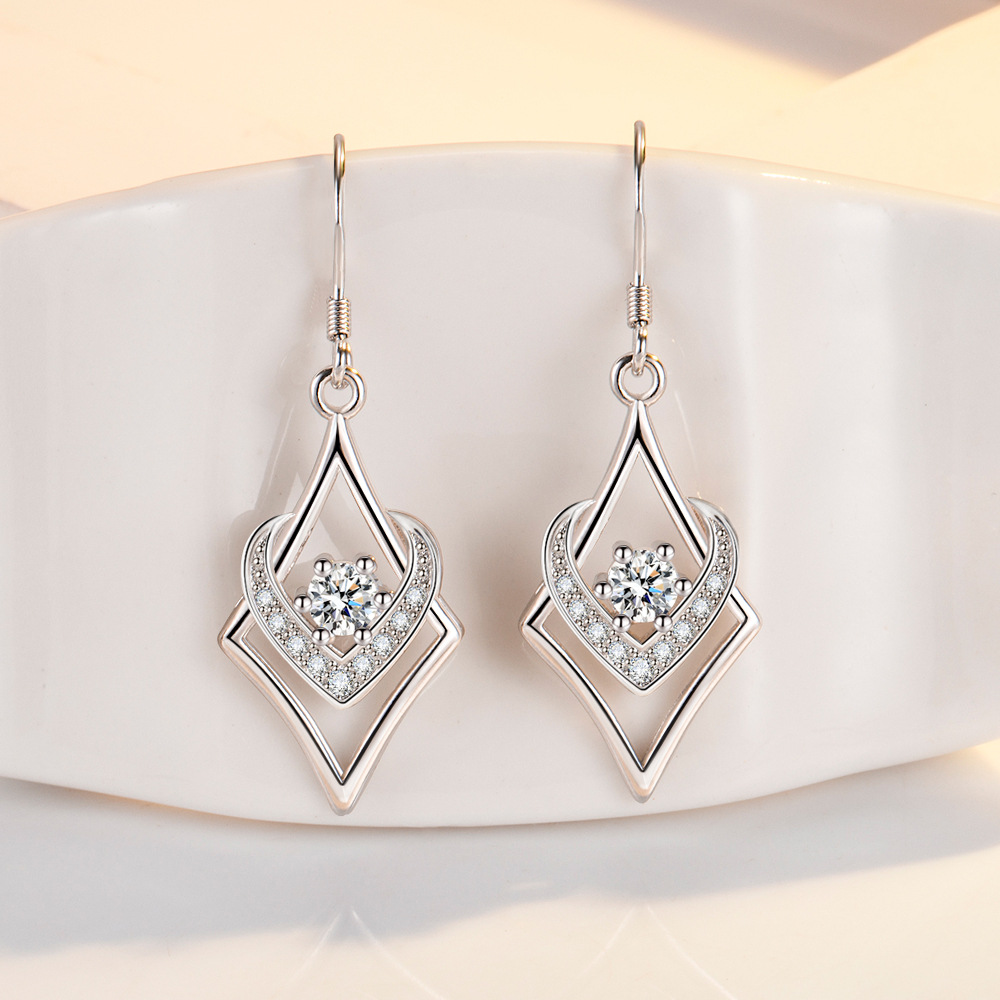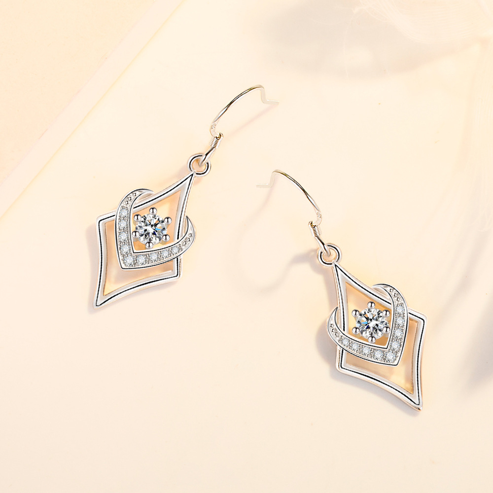 New Style Simple and Generous Fashion Zircon Diamond Earrings Women's Water Cube Earrings Elegant Distinctive Lady Ear Hook