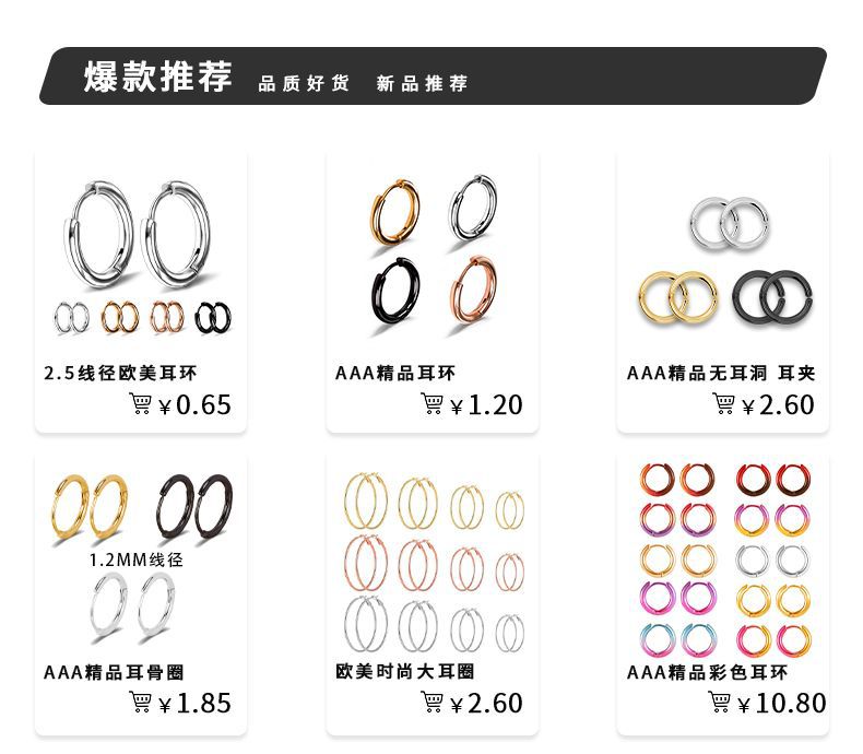 European and American New Stainless Steel Circle Distinctive Ear Buckle Men's Earrings Trendy Highlight Ear Clip Earrings
