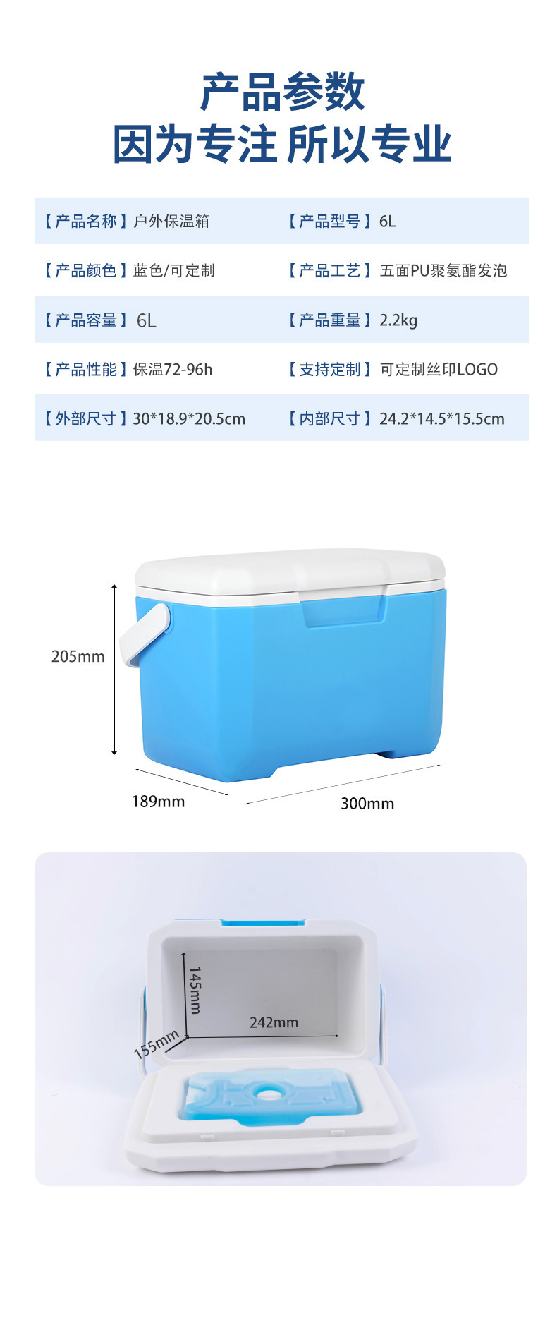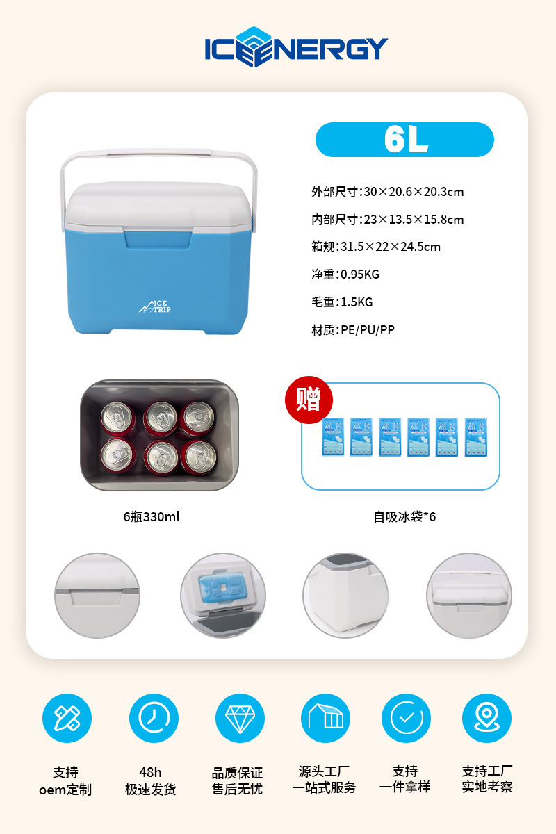 6L blue without thermometer +150ml ice box * 1 + ice bag * 5