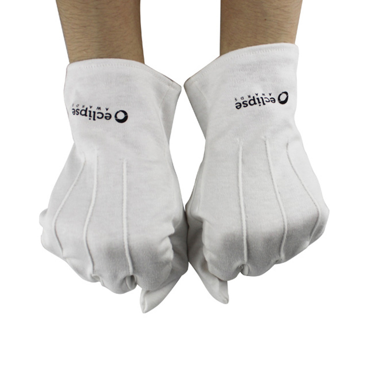 White Pure Cotton Etiquette Gloves Jewelry Military Training Performance Hand Back Three-tendon Pure Cotton Gloves Wen Play MC Work Gloves