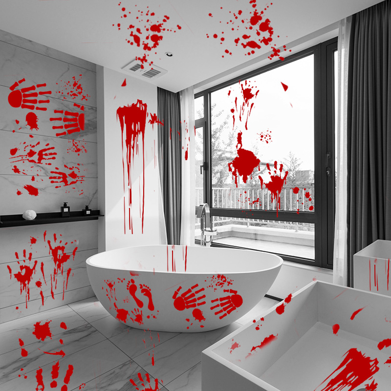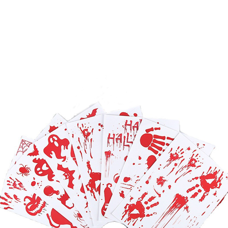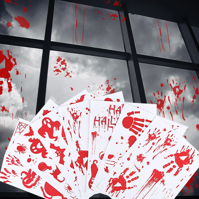 Halloween glass window stickers logo cross-border cartoon horror wall stickers blood hand footprints skull electrostatic stickers customization
