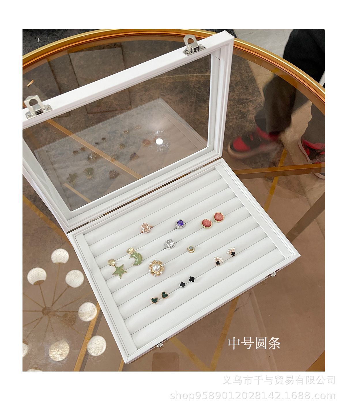 Color: White leather round strip plus 12 grid combination (large)