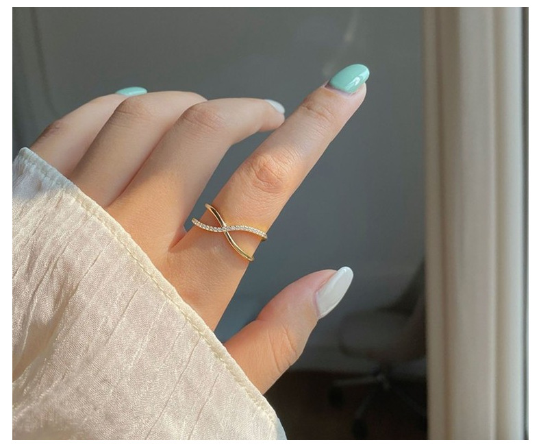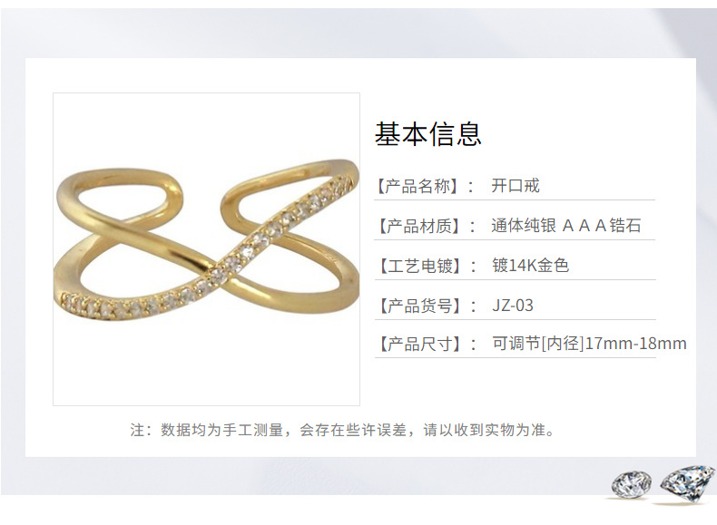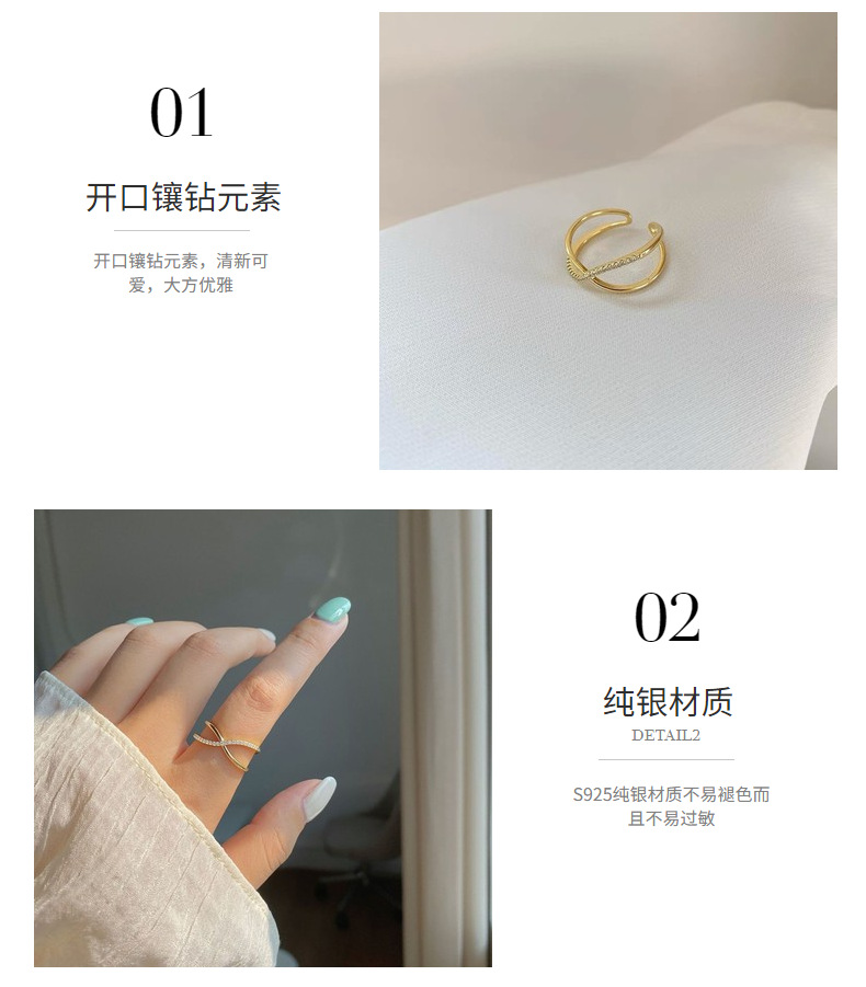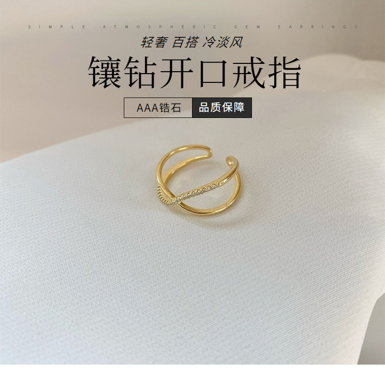 S925 Sterling Silver Plated 14k Gold Ring French Style Diamond Ring Niche Design Simple All-match Open Ring for Women