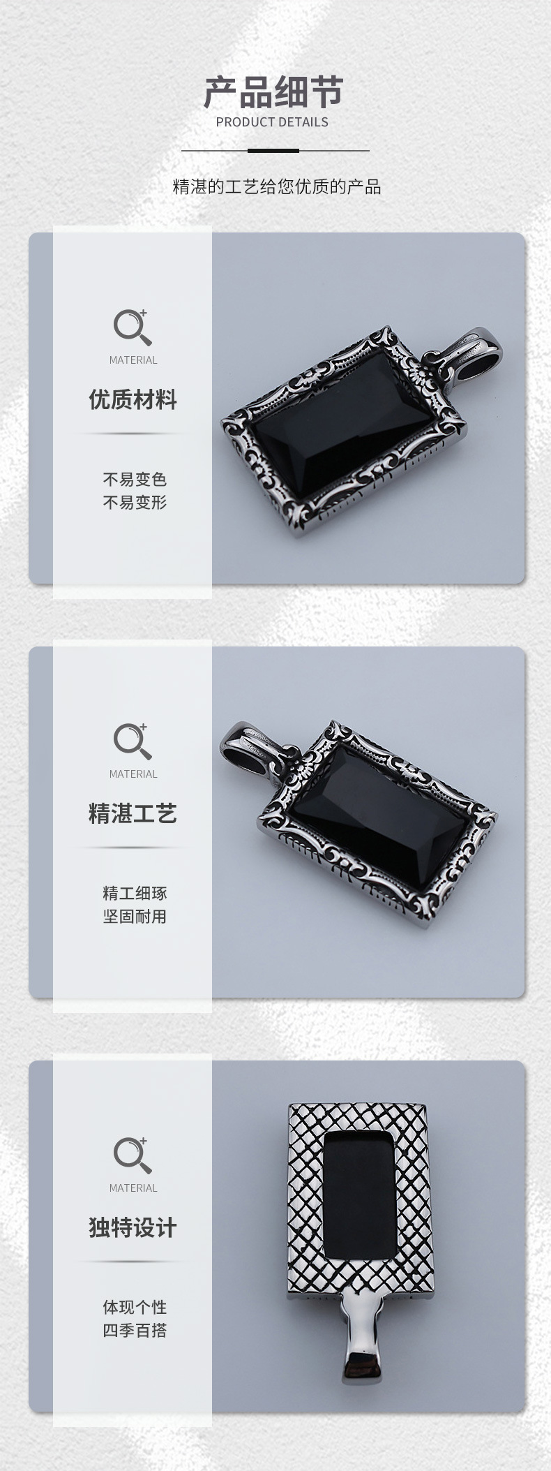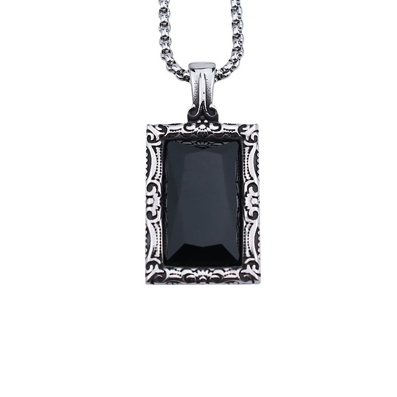 2023 new European and American retro style rectangular black zircon fashion stainless steel men's pendant spot wholesale