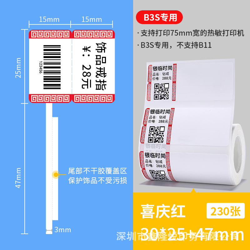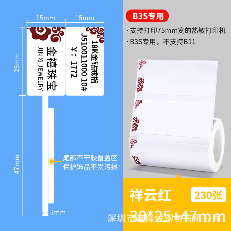 Color: Jewelry label vertical version 230/roll wide format machine suitable