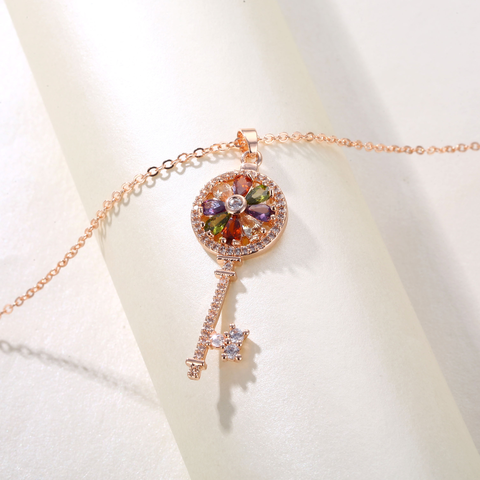 Cass Jewelry Colorful Rose Gold Birthstone Small Clear Key Pendant Necklace Open Lucky Door