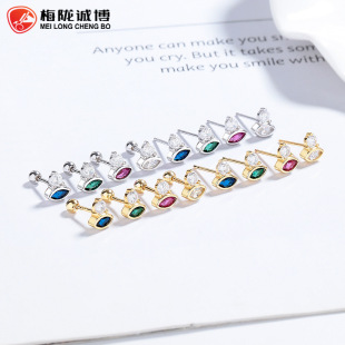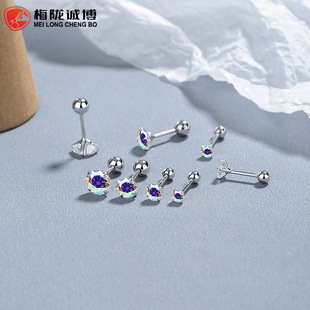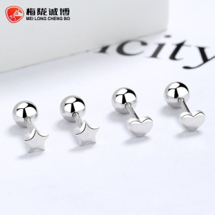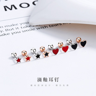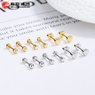 Geometric Thread Earrings Trendy 925 Sterling Silver Distinctive Black Simple ins Screw Ear Nail for Boys and Girls