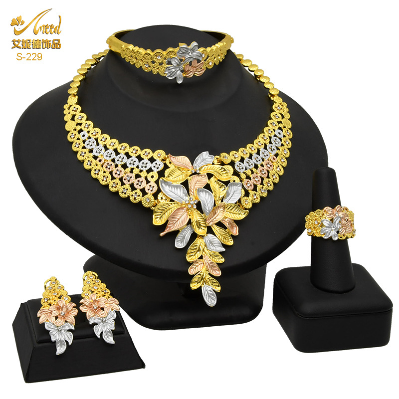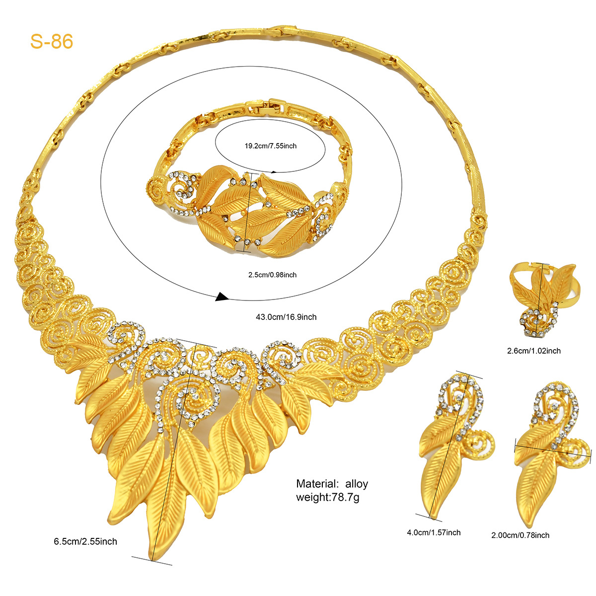 Dubai Inlaid Gold Women's Set Jewelry Saudi Bridal Necklace Bracelet Earrings Ring Four-Piece Set Wholesale