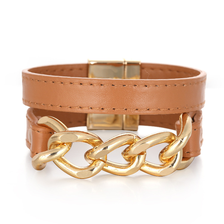 Cross-border hot selling bohemian leather simple alloy thick chain bracelet European and American mixed magnetic buckle all-match bracelet