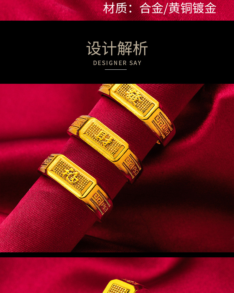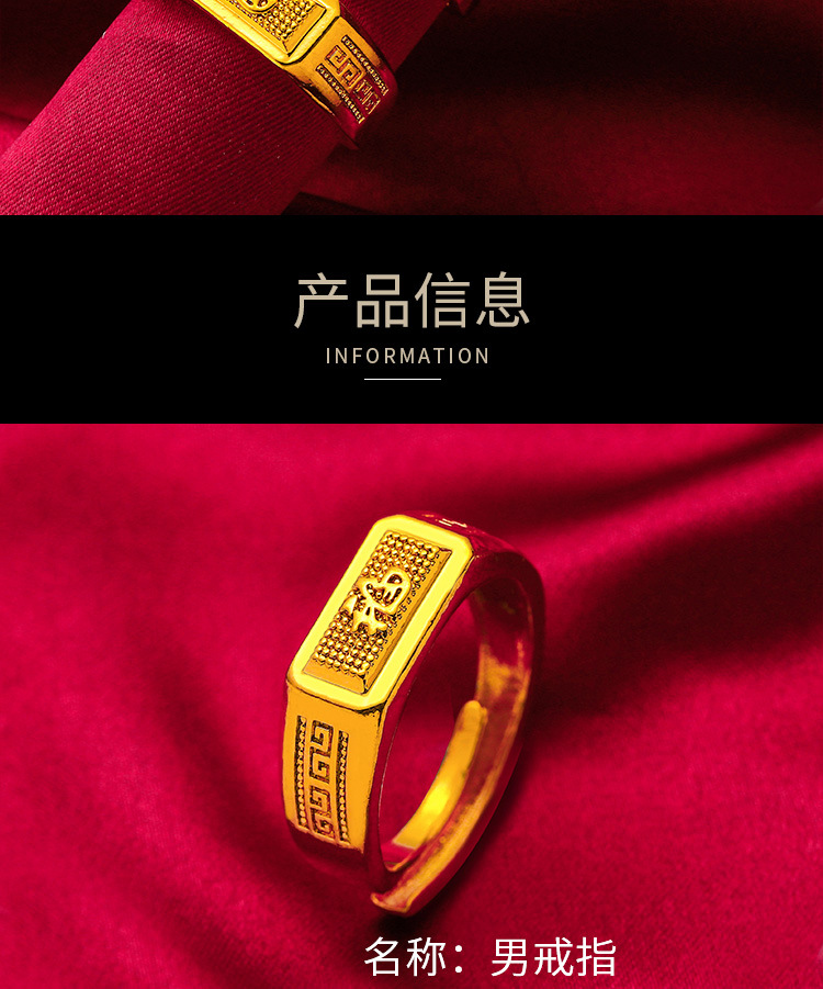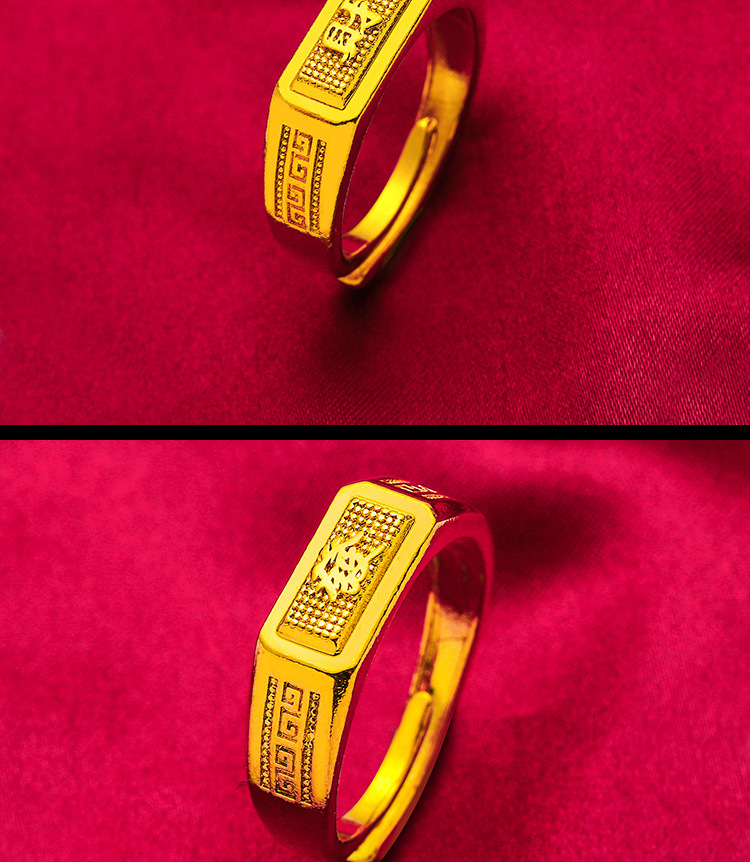 Gold Store Same Style Fa Fu Cai Back Pattern Ring Sand Gold Pure Copper Plated 24k Gold Back Pattern Opening Ring Fa Fu Cai Men's Ring
